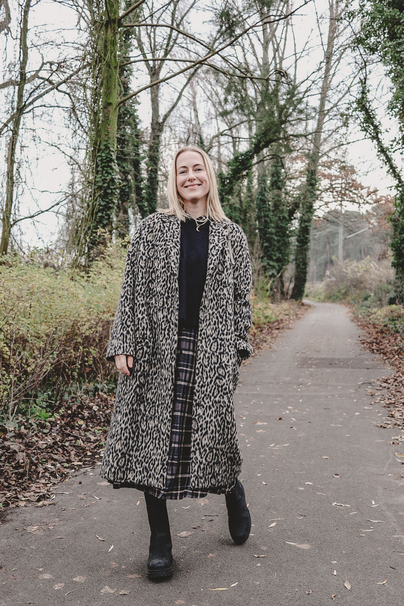 Mantel: Malaikaraiss (alt), Kleid: H&M, Pullunder: Yas, Schuhe: Johnny Bulls, Tasche: Céline