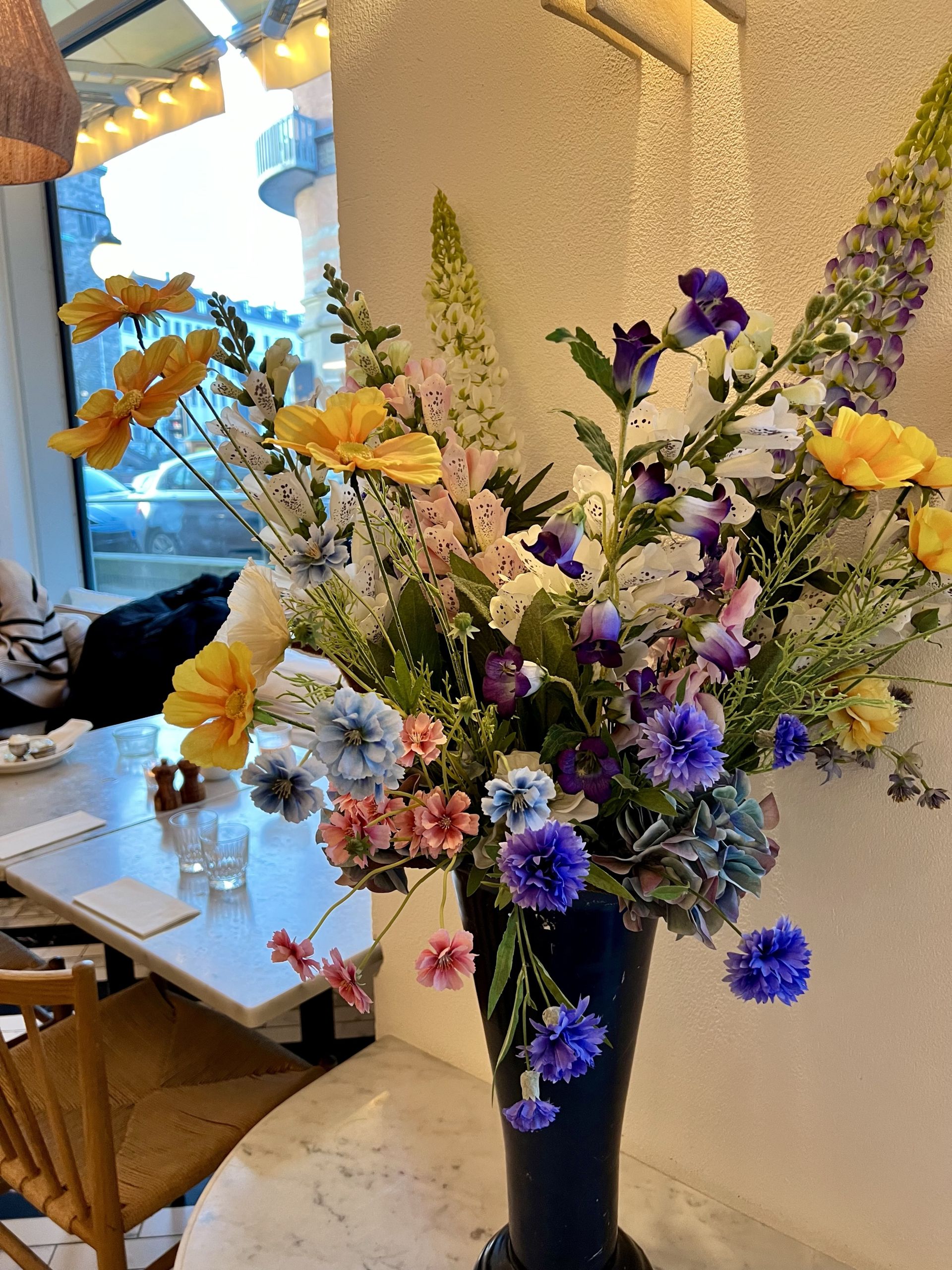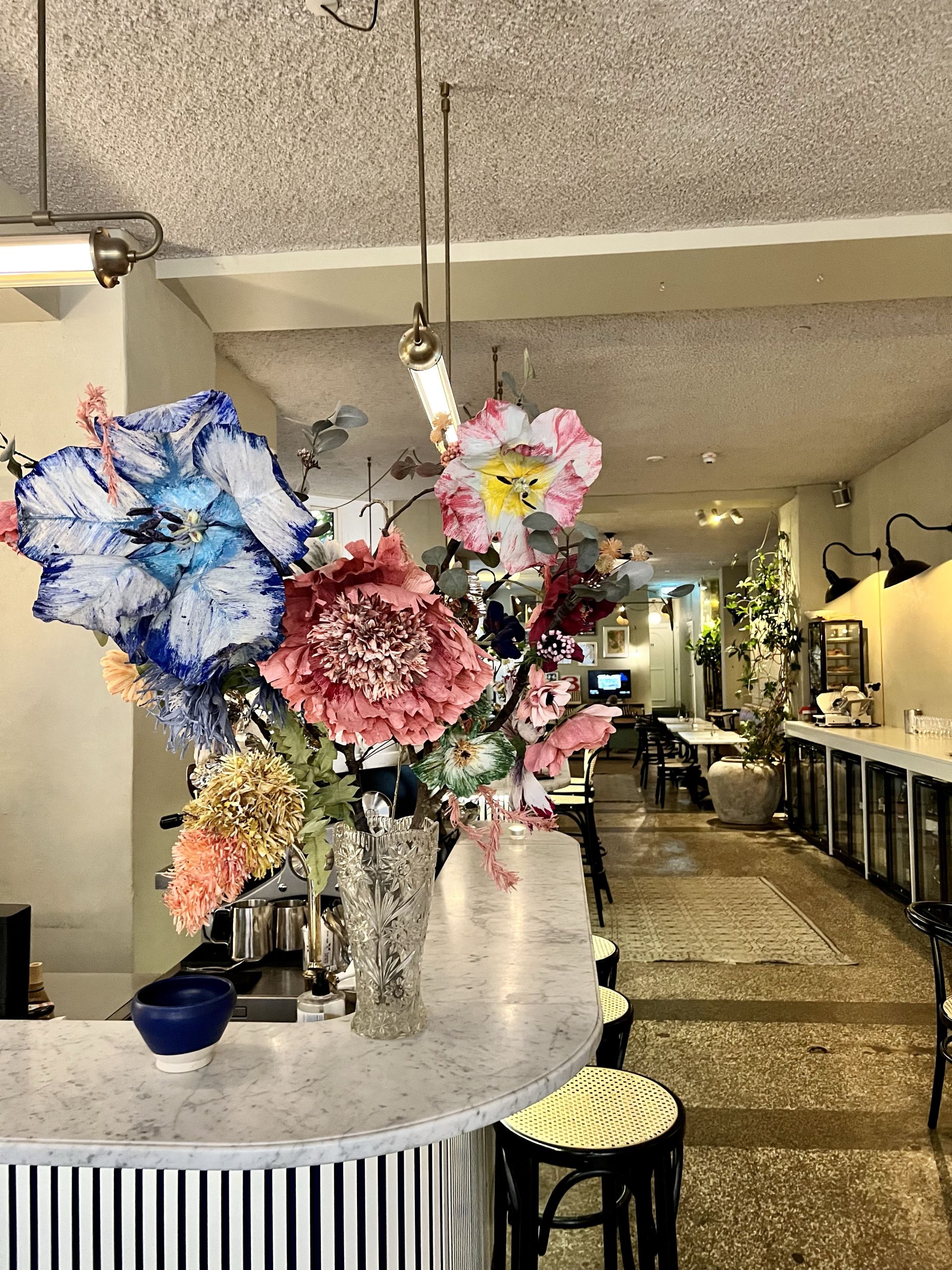 Restaurant Delphine – griechisch inspiriertes Essen (gilt für Frühstück, Lunch, Dinner) und Interieur. So, so schön! Vor allem die üppige Blumendeko und die Toiletten sollte man sich genauer anschauen und dann ein paar Ideen für zu Hause mitnehmen. Ich sage nur Kunstblumen und Spiegelwand!
