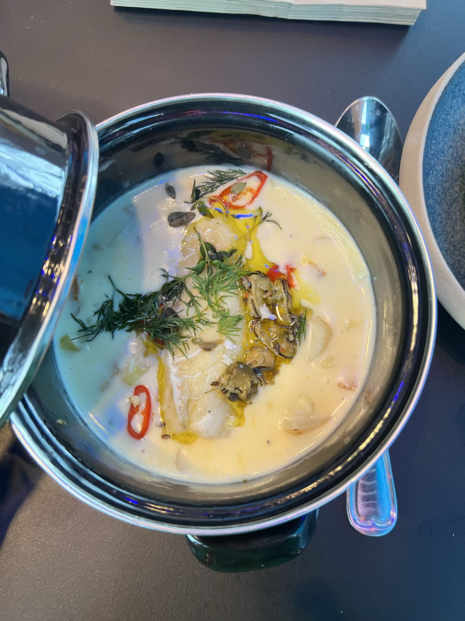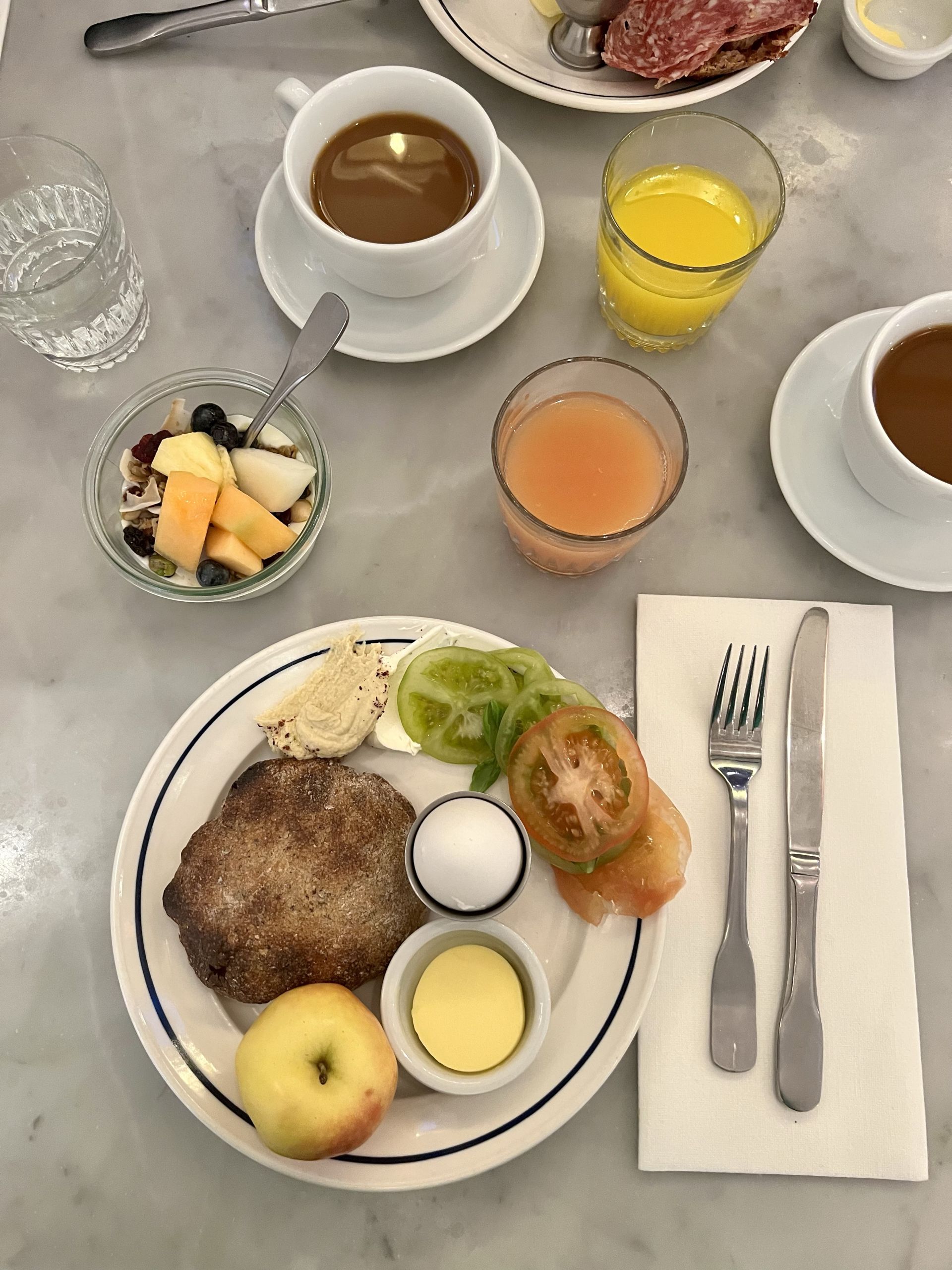 Das Frühstück wird im Restaurant Delphine gegenüber serviert. Optisch ein absolutes Highlight und das Essen ist auch gut. Silvester haben wir auf dem Zimmer gefeiert, weil uns ein Menü für 600 Euro too much war. Dafür gab’s Pommes, Champagner und Schawarma.