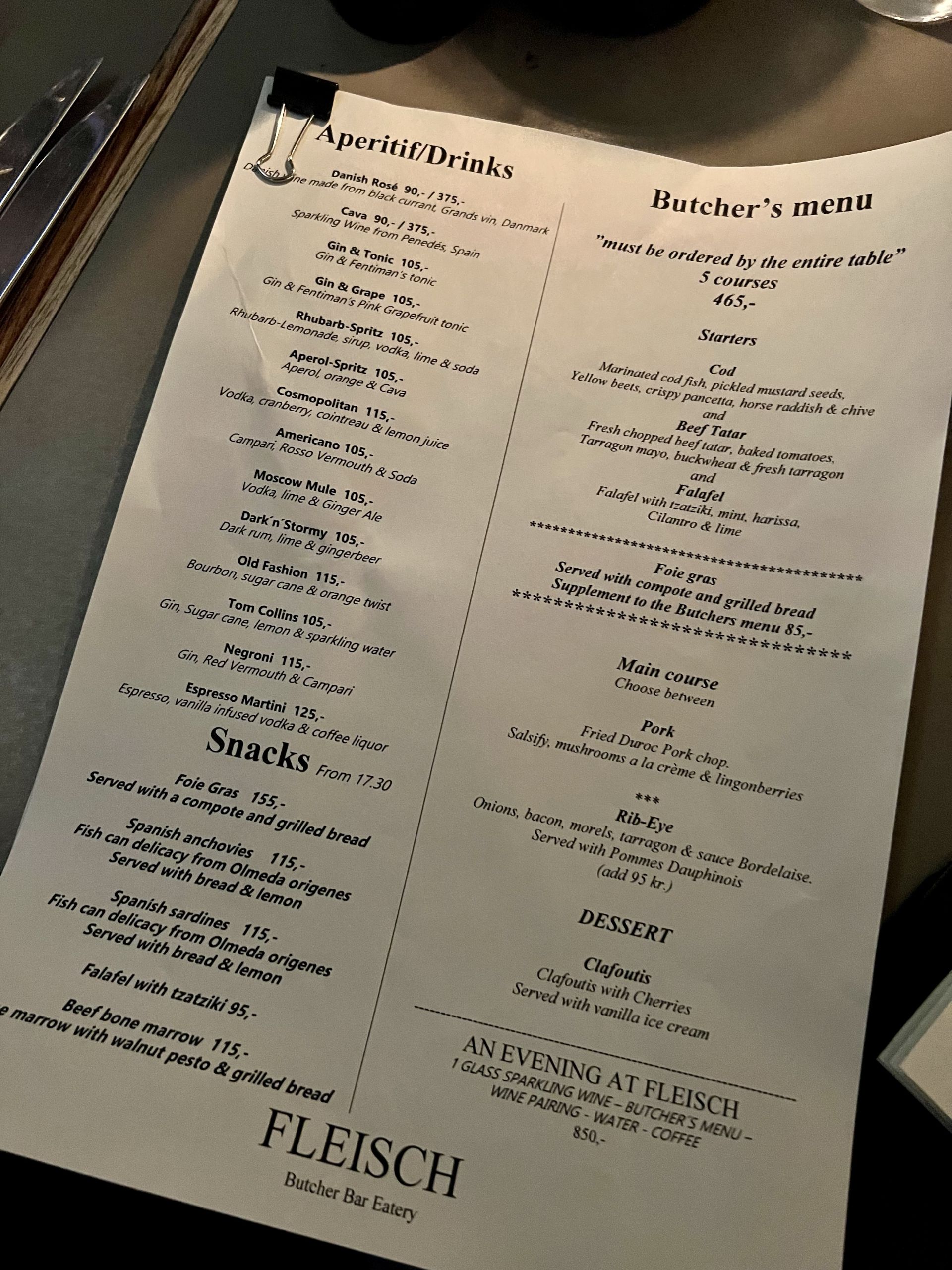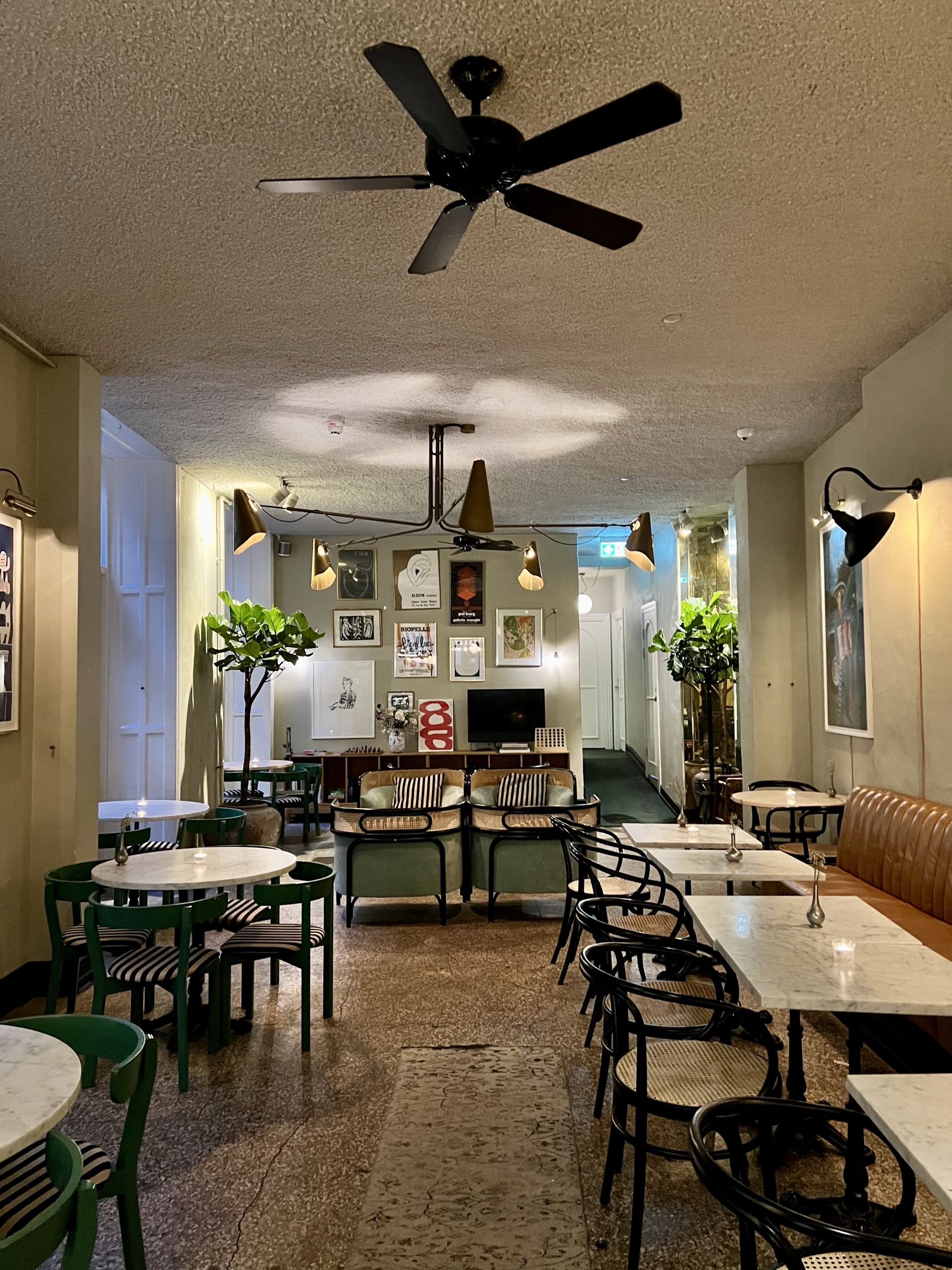 Fleisch Restaurant – hier wurde ich vor sieben Jahren von der Vegetarierin zu Fleischesserin. Tipp: Das Butchers Menue mit harten Drinks oder Weinbegleitung bestellen. Aber Achtung, das Essen ist wirklich gar nichts für Gemüsefans: Der Starter ist Hähnchenleber-Mousse, dann geht’s weiter mit Beef Tatar, Rippchen und Entrecote – oder man wählt, so wie ich dieses Mal, norwegischen Hummer. Das Konzept wird knallhart durchgezogen, für Kinder gibt’s keine Specials. Und trotzdem hat man einen super Abend, weil der Vibe gut ist und auf den Klos getanzt wird. Ohne Kind würde ich mich direkt an die Bar setzen.