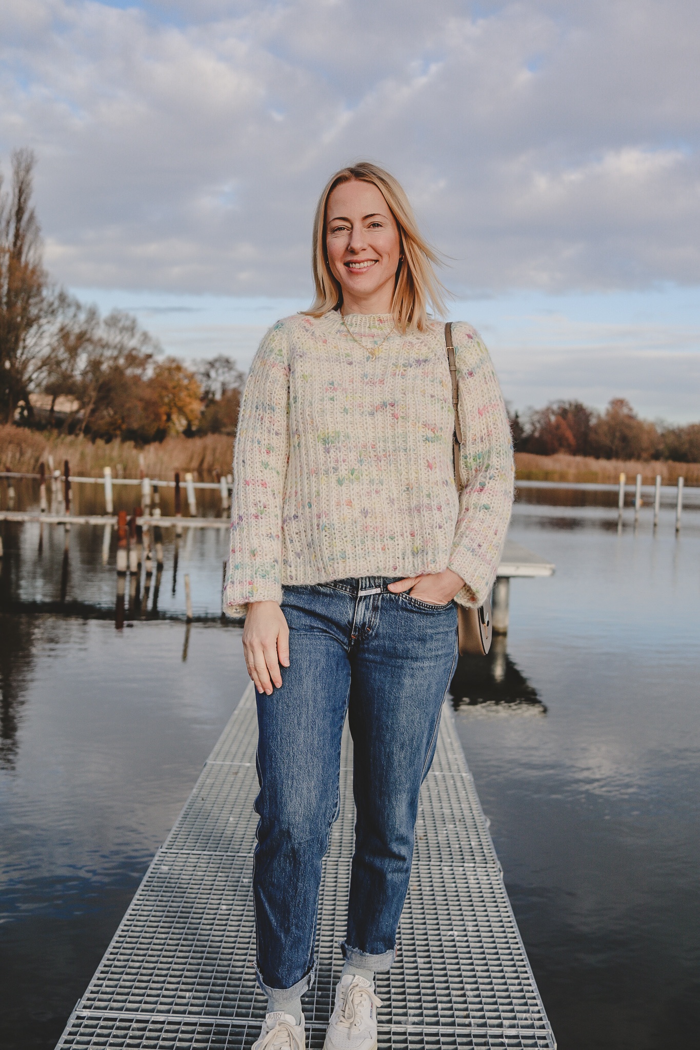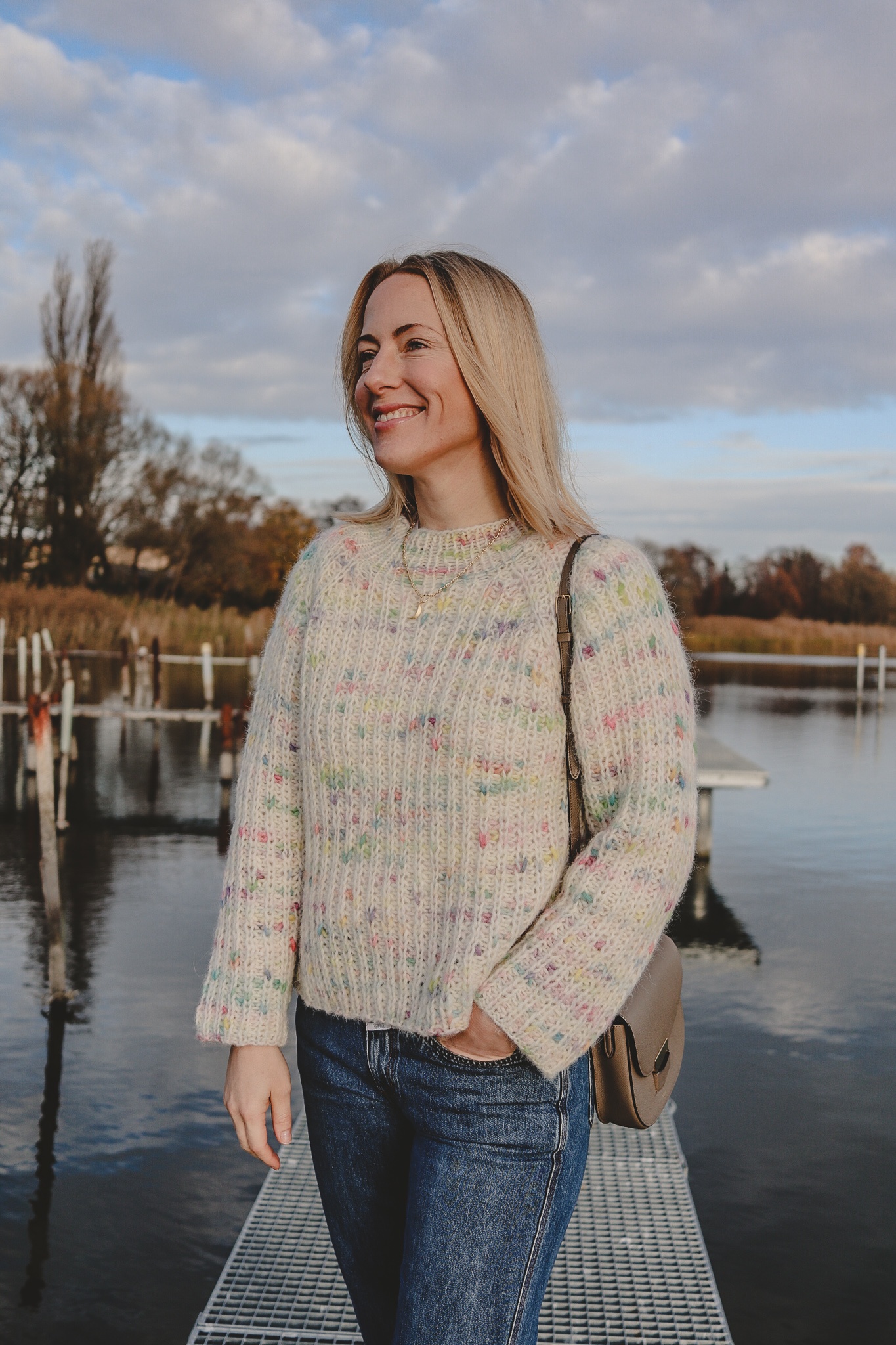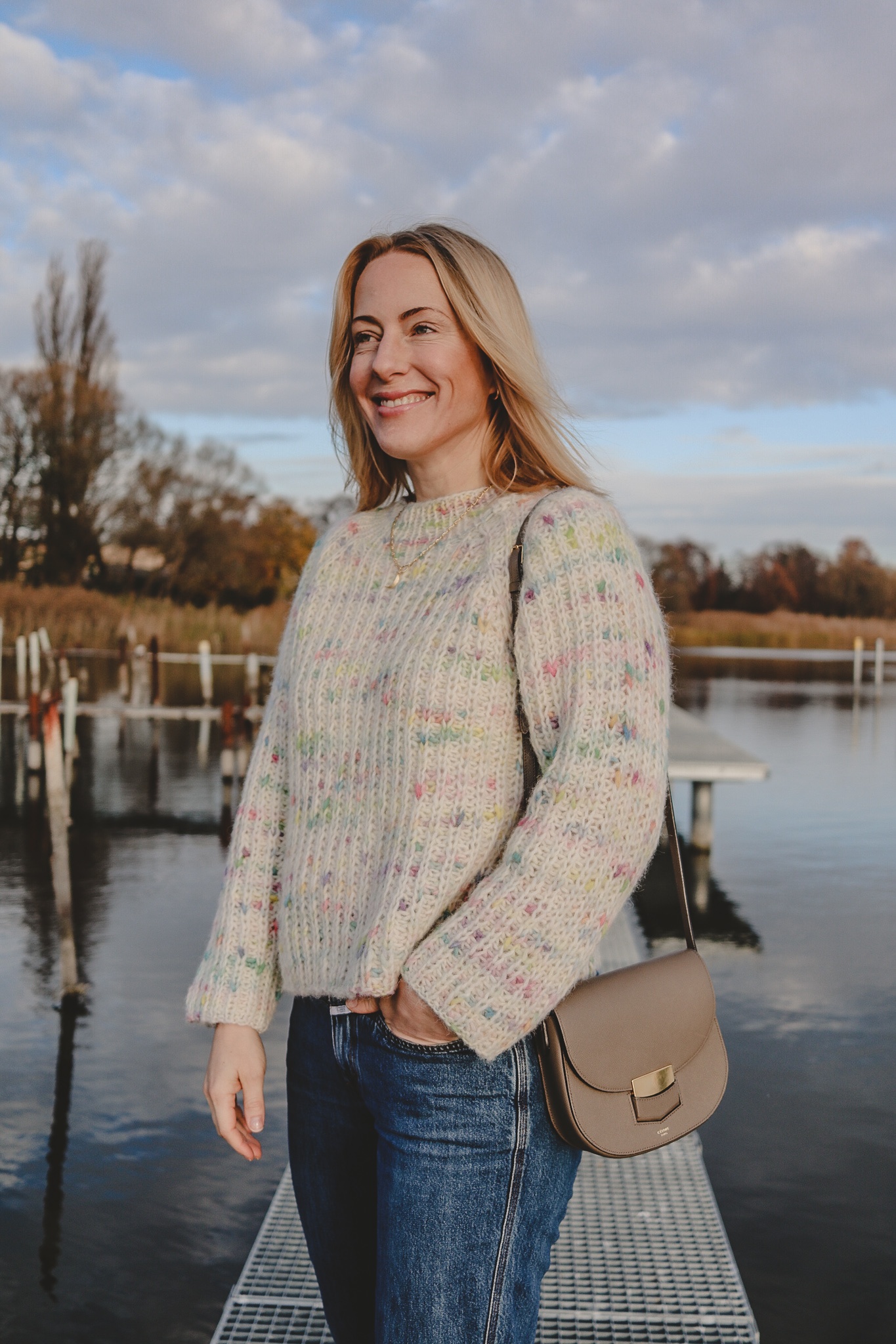 Pullover: Lana Grossa x Lala Berlin, Jeans: Closed, Kette: Closed x Maximova, Ohrringe: Yes my Love, Tasche: Céline Trotteur, Schuhe: Aurty, Make-up: alles von Nui Cosmetics