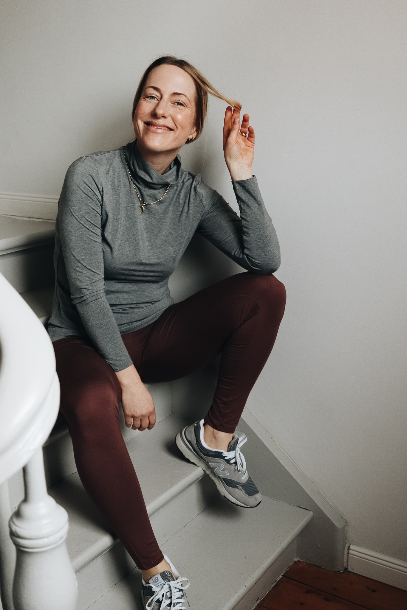 Gegen Leggings habe ich mich im Lockdown lange gewehrt, aber das Modell The Luna Leggings von Les Lunes ist 1.) nicht schwarz, sondern kastanienbraun und besteht 2.) aus Bambusviskose, was die Buxe edel schimmern (aber nicht glänzen) lässt und den Stoff extrem weich macht. So traue ich mich nicht nur in die Kita, sondern mit einem Kaschmirmantel und Designertasche rein theoretisch unter Menschen ins KadeWe, wenn die Schlemmerabteilung wieder aufmacht.