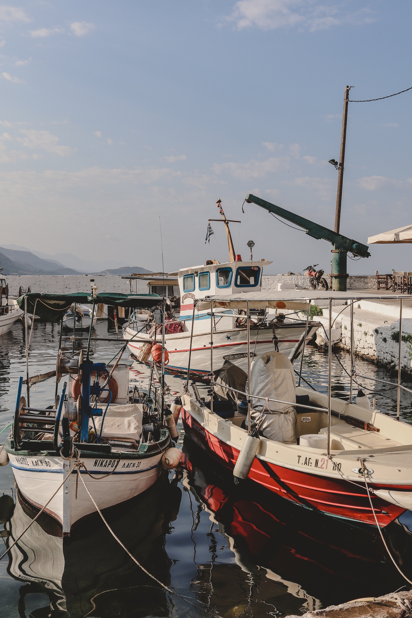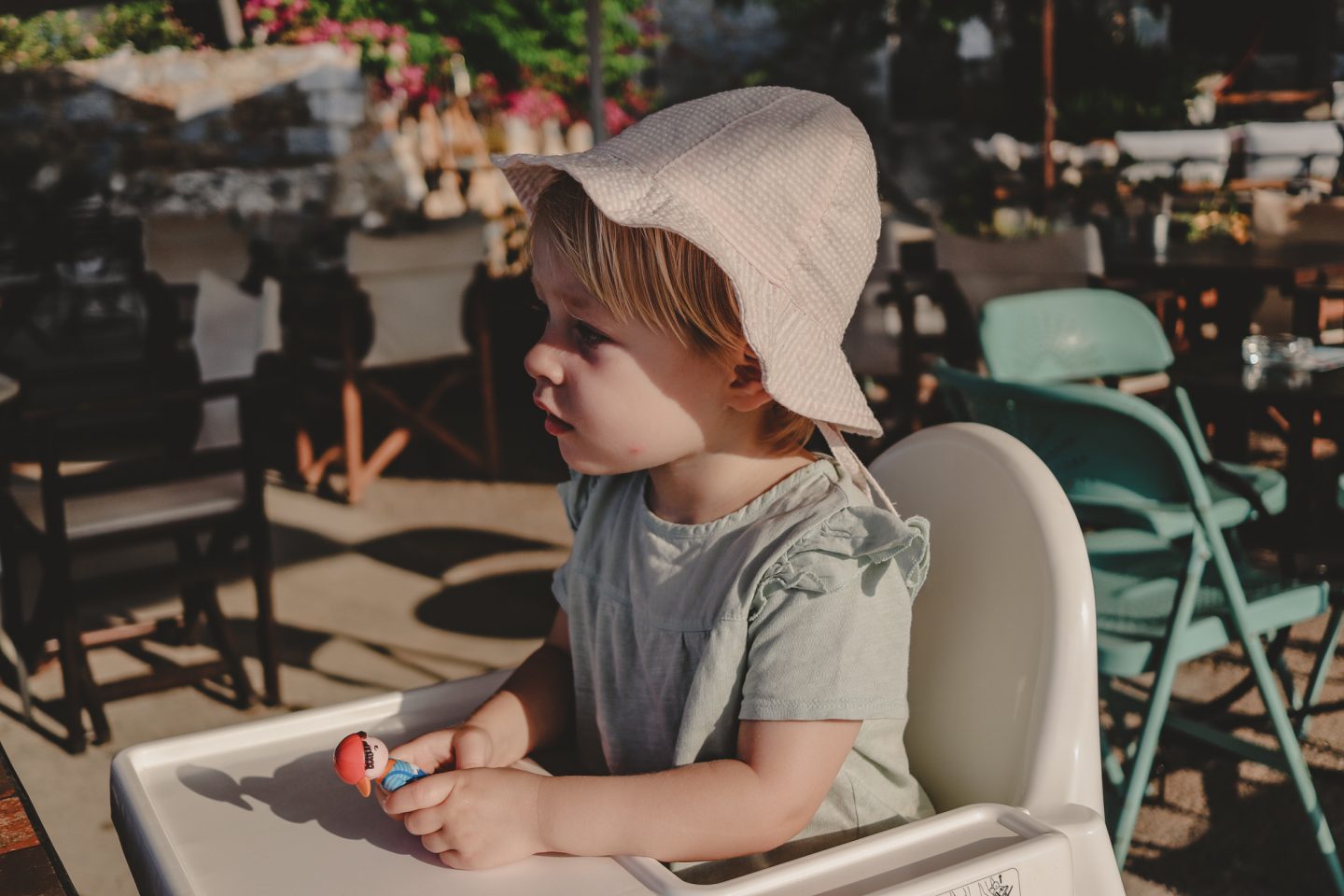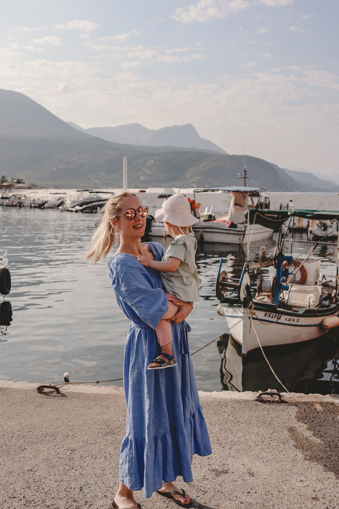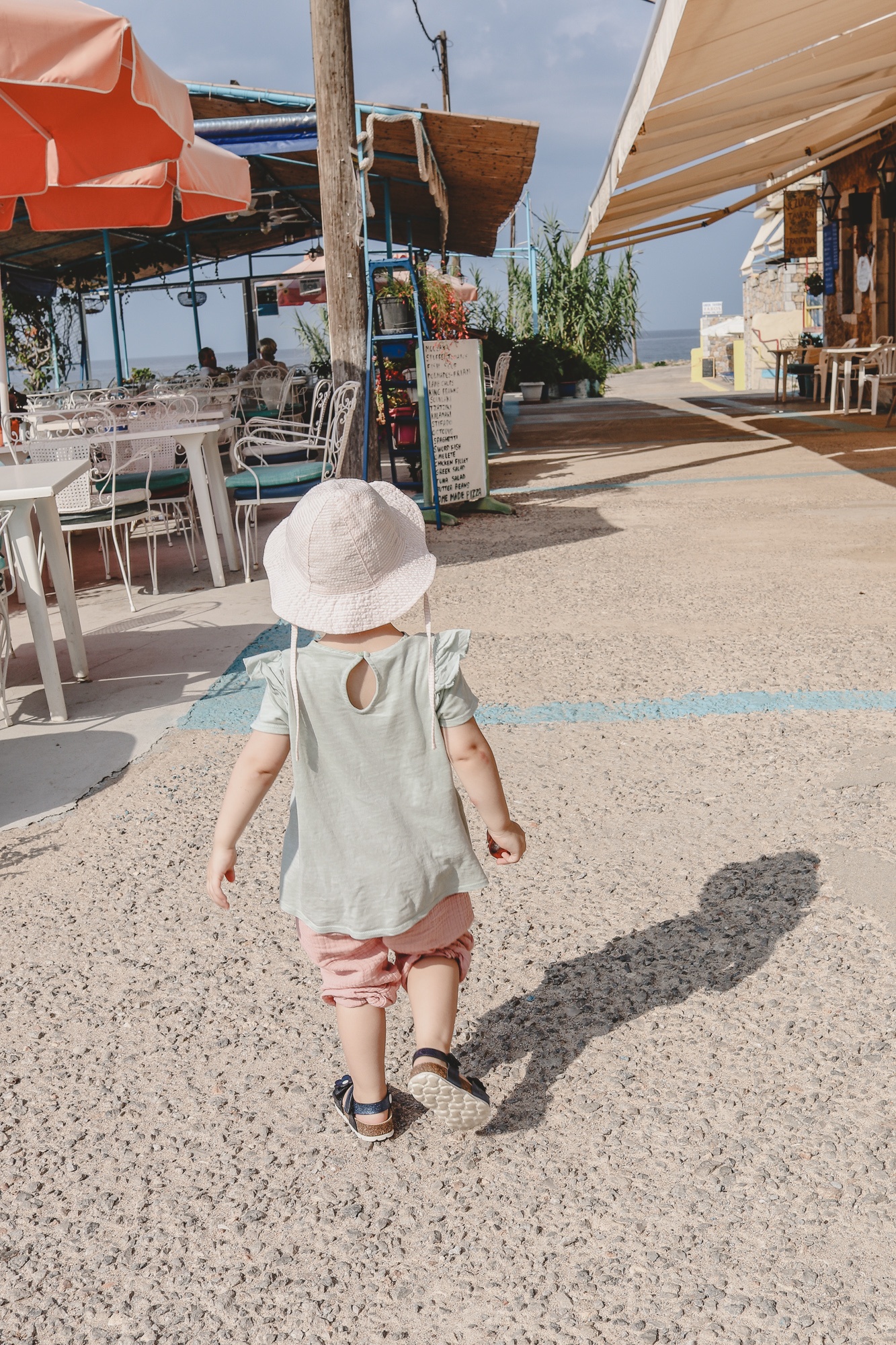 Mindestens einmal fahren wir während unserer Zeit in Griechenland nach Agios Nikolaos und frühstücken ganz früh am Hafen, wenn die Fischerboote einlaufen. Danach schlendern wir hoch zum Leuchtturm und genießen die Aussicht auf das Meer und die Berge. Baby Peng ist übrigens schon zum dritten Mal in ihrem Leben in Griechenland und wackelt hier rum, als würde das Dorf ihr gehören. Es ist schön zu sehen, wie sich die Kinder hier, ohne die gleiche Sprache zu sprechen, nur über das Spielen verständigen.