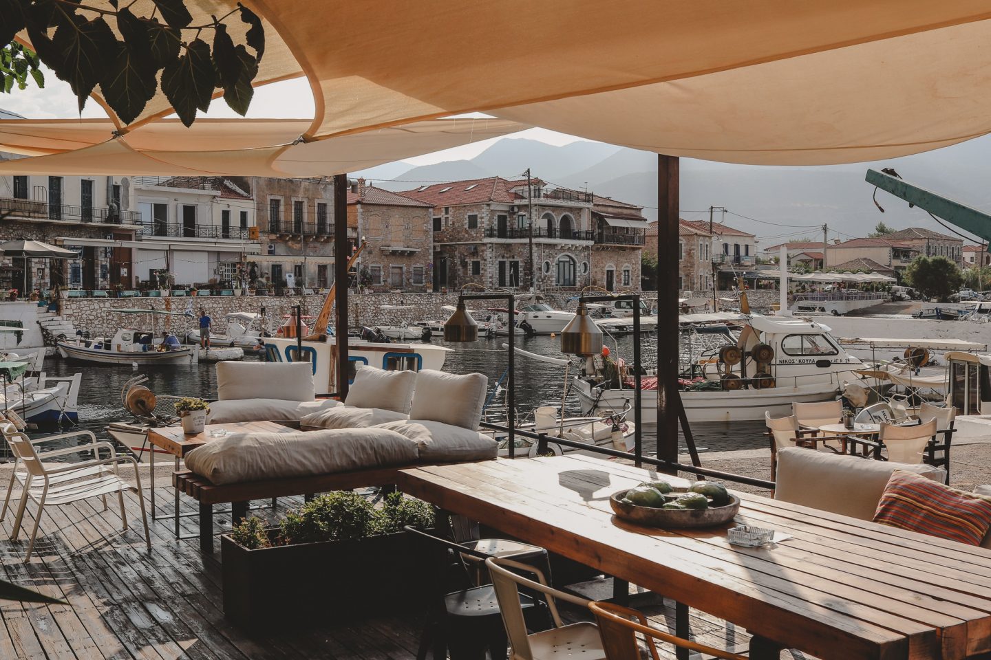 Meine Großeltern haben hier früher sogar gelebt. Heute kommen meine Tanten, Cousinen und Cousins samt Urenkeln, um in Stoupa und Nomitsi, einem kleinen Dorf oberhalb der Bucht, Urlaub zu machen. Stoupa ist super, weil für alle etwas dabei ist: Am Strand spielen wir Volleyball oder Tennis, während die Kleinen im Sand buddeln oder schwimmen lernen. Es gibt Eis, frischen Orangensaft und Cappuccino freddo, später einen Sundowner.