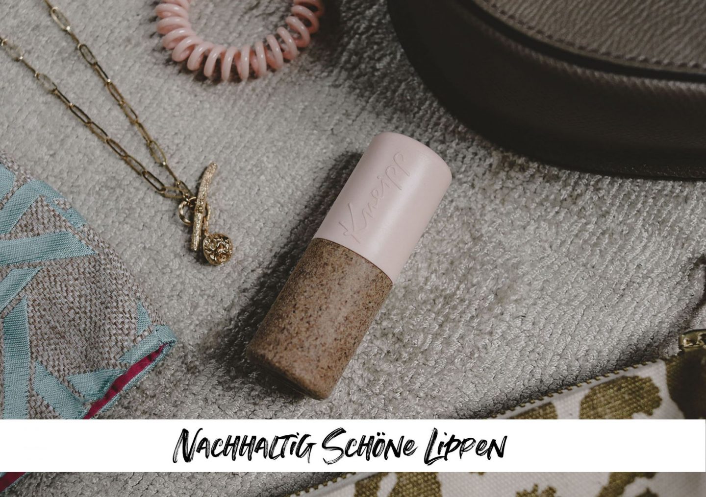 Noch ein Detail, das mich überrascht hat: Die Kappe der Kneipp Lippenpflege Samtweich besteht nicht – wie sonst bei Lippenstiften üblich – aus Plastik, sondern aus Paper Blend. Der biobasierte, nachwachsende Rohstoff ist stabil, schützt das Produkt vor Feuchtigkeit und Verunreinigung. Kneipp ist der erste Hersteller weltweit, der dieses neue Material nutzt und sein Verpackungsportfolio damit nachhaltiger gestaltet. Das gilt auch für die Hülsen aus recycelten Weinkorken und die Faltschachtel aus Graskarton.