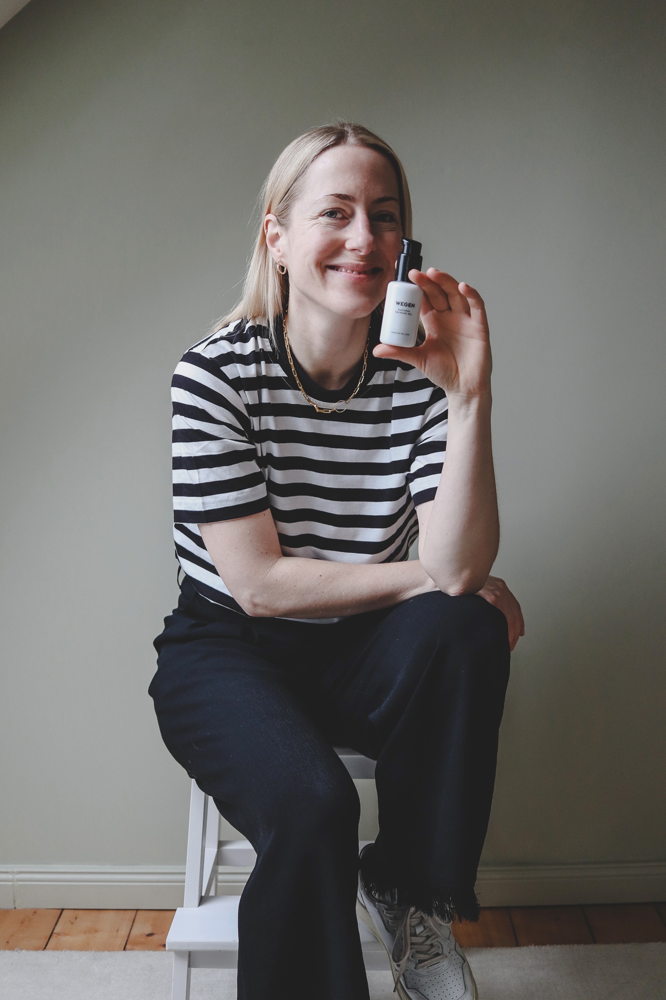 Vorher habe ich noch einen Trick. Ich verwende dieses neue ebenfalls vegane und tierversuchsfreie Produkt: WEGEN Priming Oil. Denn mit jedem Jahr, mit dem ich älter werde, merke ich, dass meine Haut schneller austrocknet und nicht nur nach der Reinigung, sondern auch im Laufe des Tages ein Spannungsgefühl eintritt. Vor allem dann, wenn ich Make-up und Puder verwende, egal ob nur mattierend, Highlighter oder Bronzer.