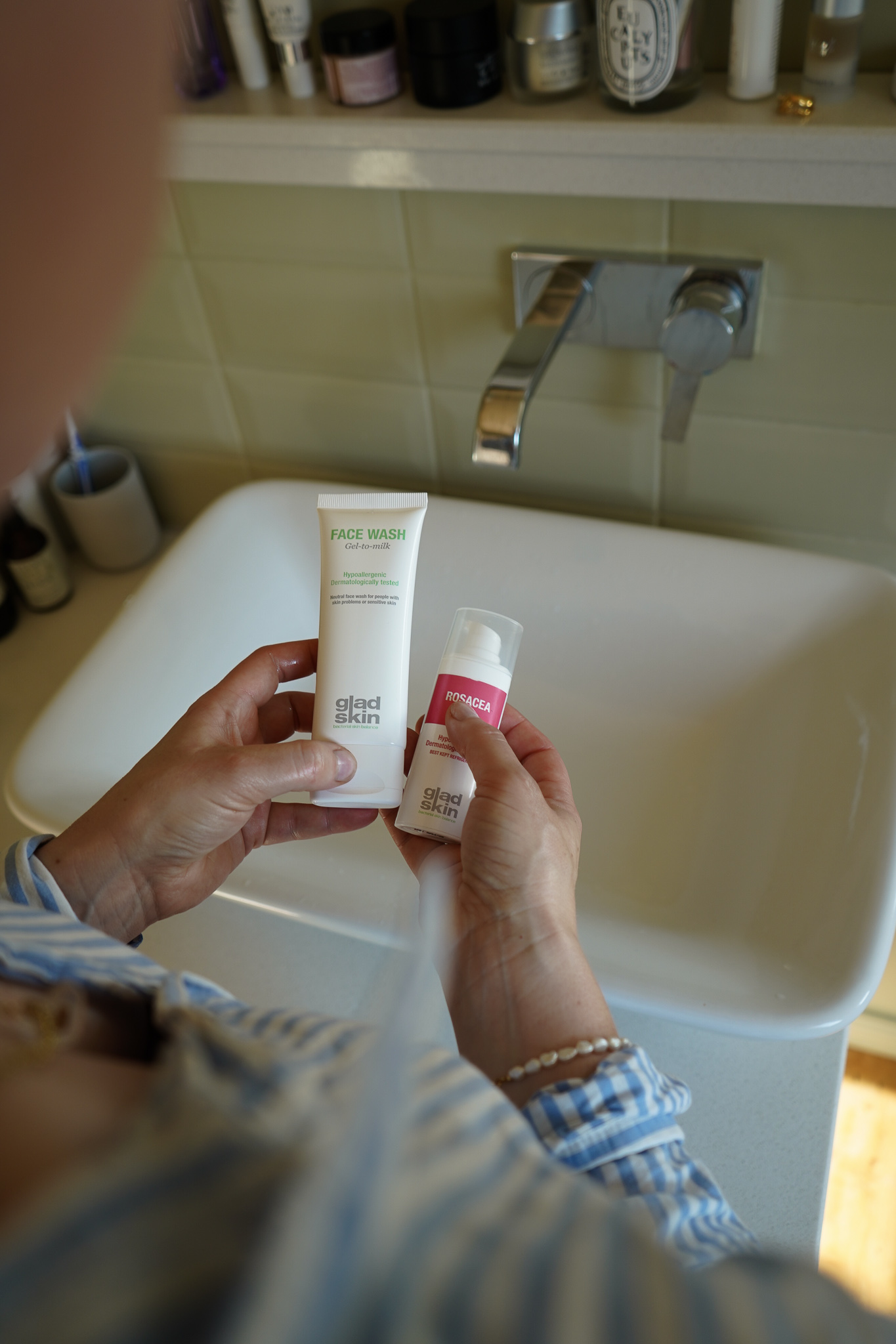 Ich teste das Rosacea Cream Cleansing Set inklusive Rosacea Cream und einer seifenfreien Gel- to-Milk-Gesichtsreinigung nun seit zwei Wochen. Was ich toll finde: Keines der Produkte hat mehr als zehn Inhaltsstoffe, die auf dem Blog des Unternehmens detailliert beschrieben werden. Bei anderen Tuben und Tiegeln habe ich angesichts der langen Liste früher immer schnell den Überblick verloren.