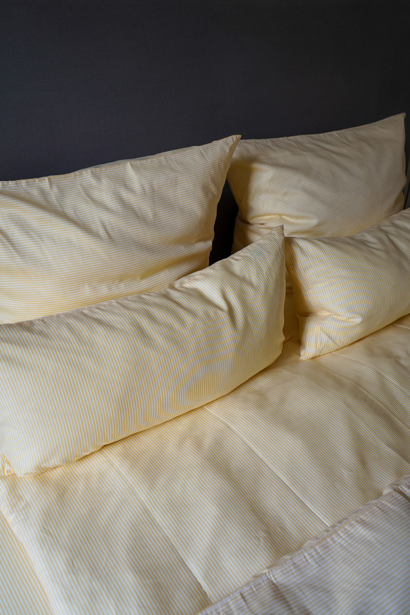 - Gute Bettwäsche: Ich möchte mich jede Nacht so fühlen, als würde ich in einem Luxus-Hotel übernachten. Atmungsaktive Bettwäsche ist mir wichtig, weil ich viel schwitze. Ich kuschle gerne in die seidig, kühlen Decken von Royfort. Das Prestige Baumwolle Streifen Set in Sanftgelb-Weiß gestreift erinnert mich an den Sommer und macht schon beim Beziehen gute Laune. Mit dem Code ALEXA15 bekommt ihr bis 16.3. auf das gesamte Sortiment 15 % Rabatt.