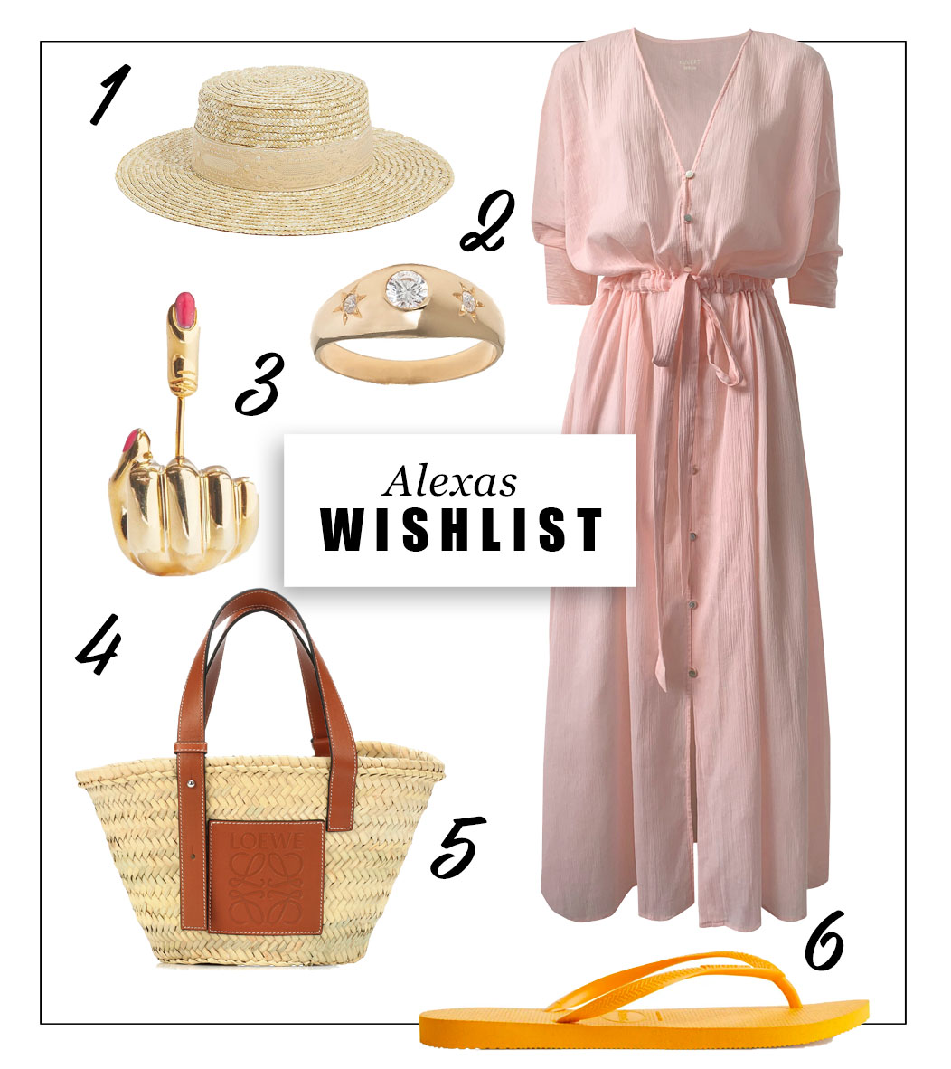 1. Hut: Lack of Color, 2. Kleid: Kuvert Berlin, 3. Ohrring: Anissa Kermiche, 4. Tasche: Loewe, Ring: Margova, Flip Flops: Havaianas (* Affiliate Links)