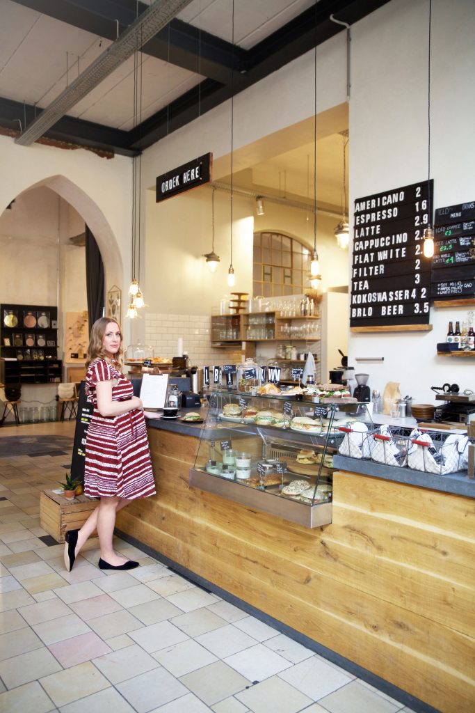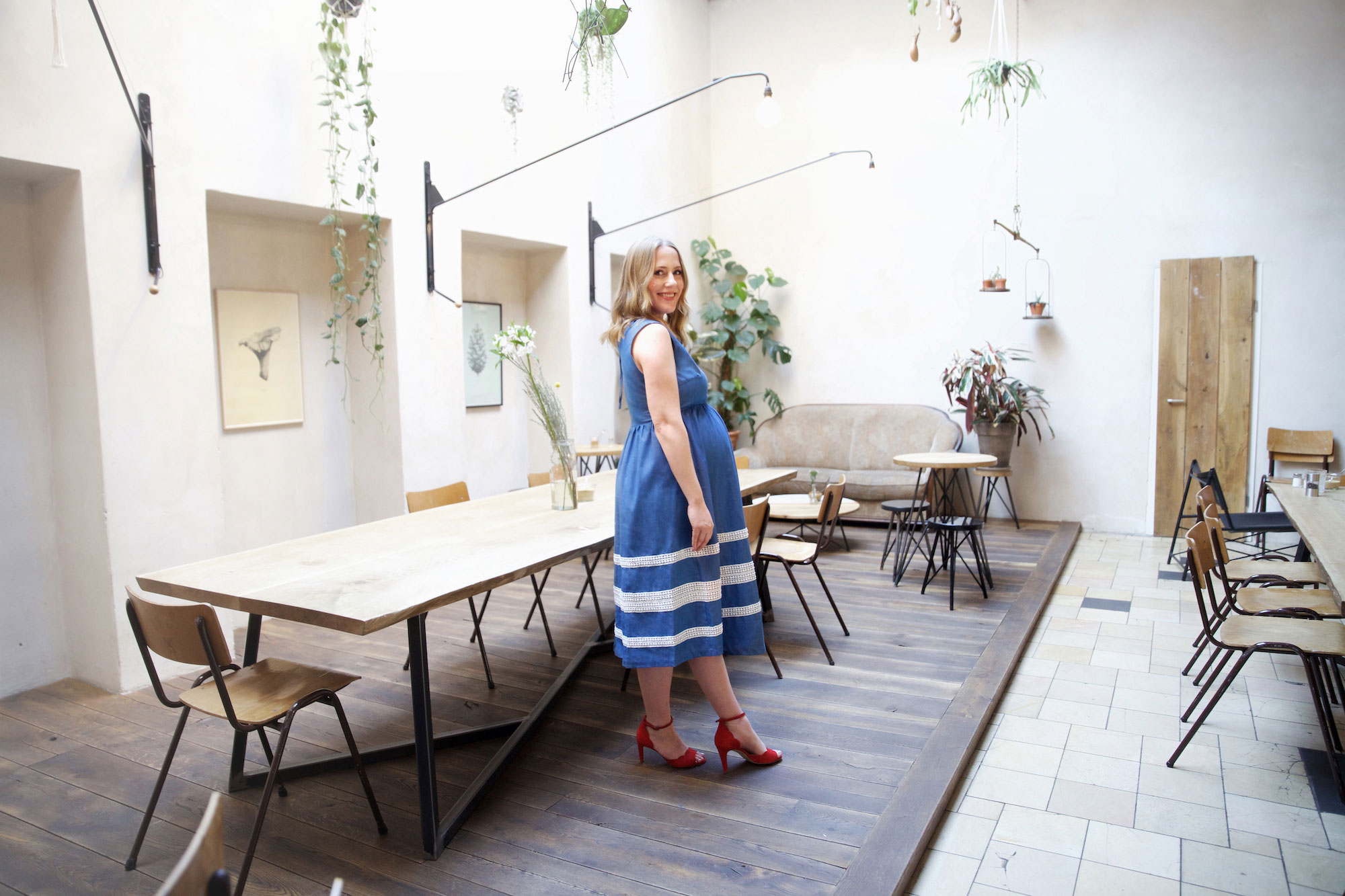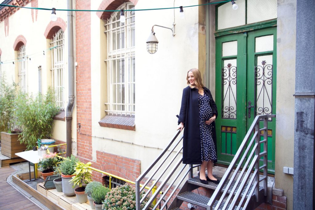 Als die Anfrage von Mint & Berry kam war für mich sofort klar, wer die Fotos machen sollte: Meine Freundin Marlene Sørensen, Journalistin, Fotografin und selbst Mutter. Für ihr Modebuch „Stilvoll“ hat sie bereits jede Menge toller Frauen portraitiert und ich war mir sicher, dass sie auch mich ins richtige Licht setzen würde. Immerhin war ich zum Zeitpunkt der Aufnahmen im Halleschen Haus schon im 8. Monat schwanger.