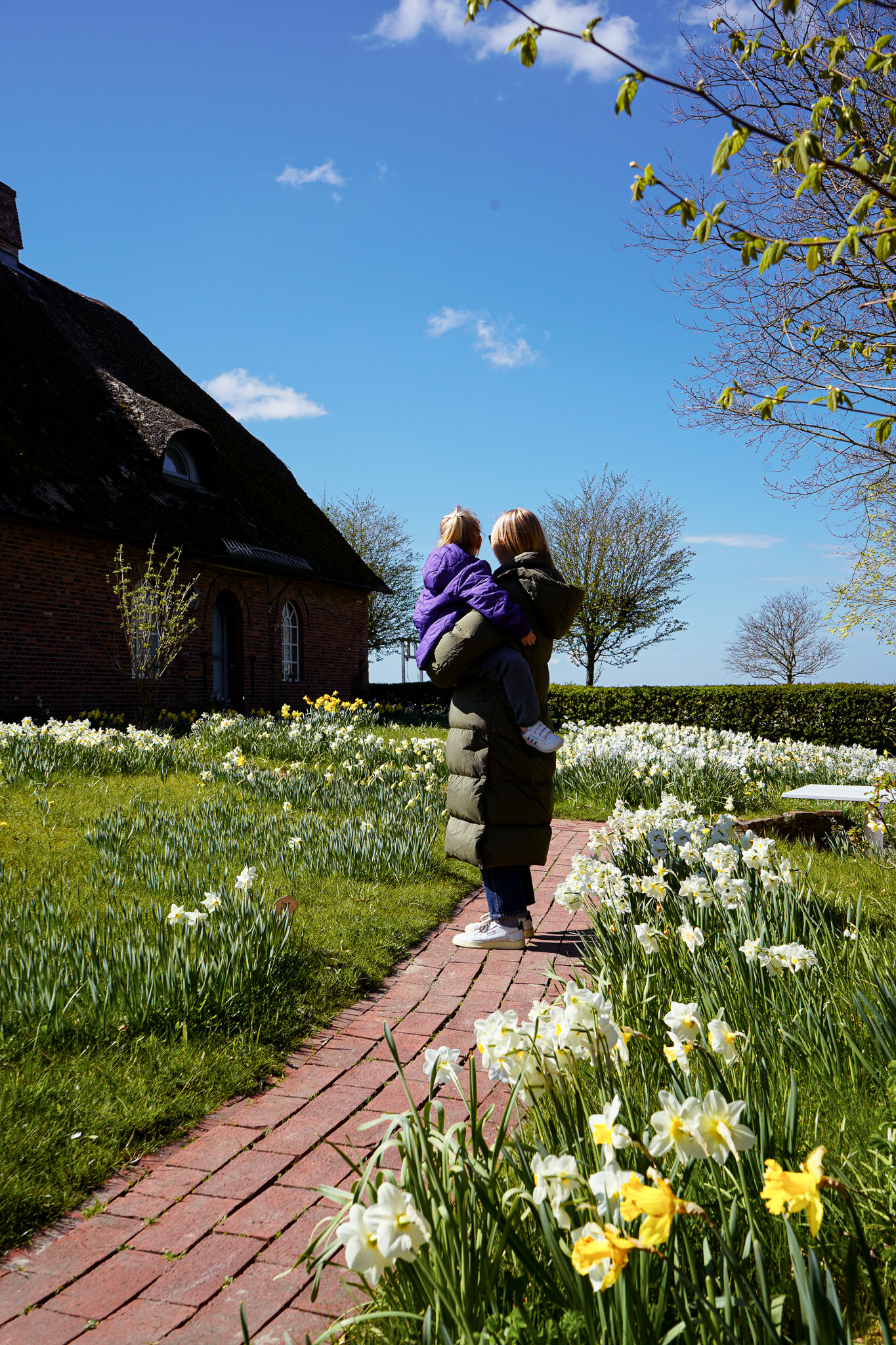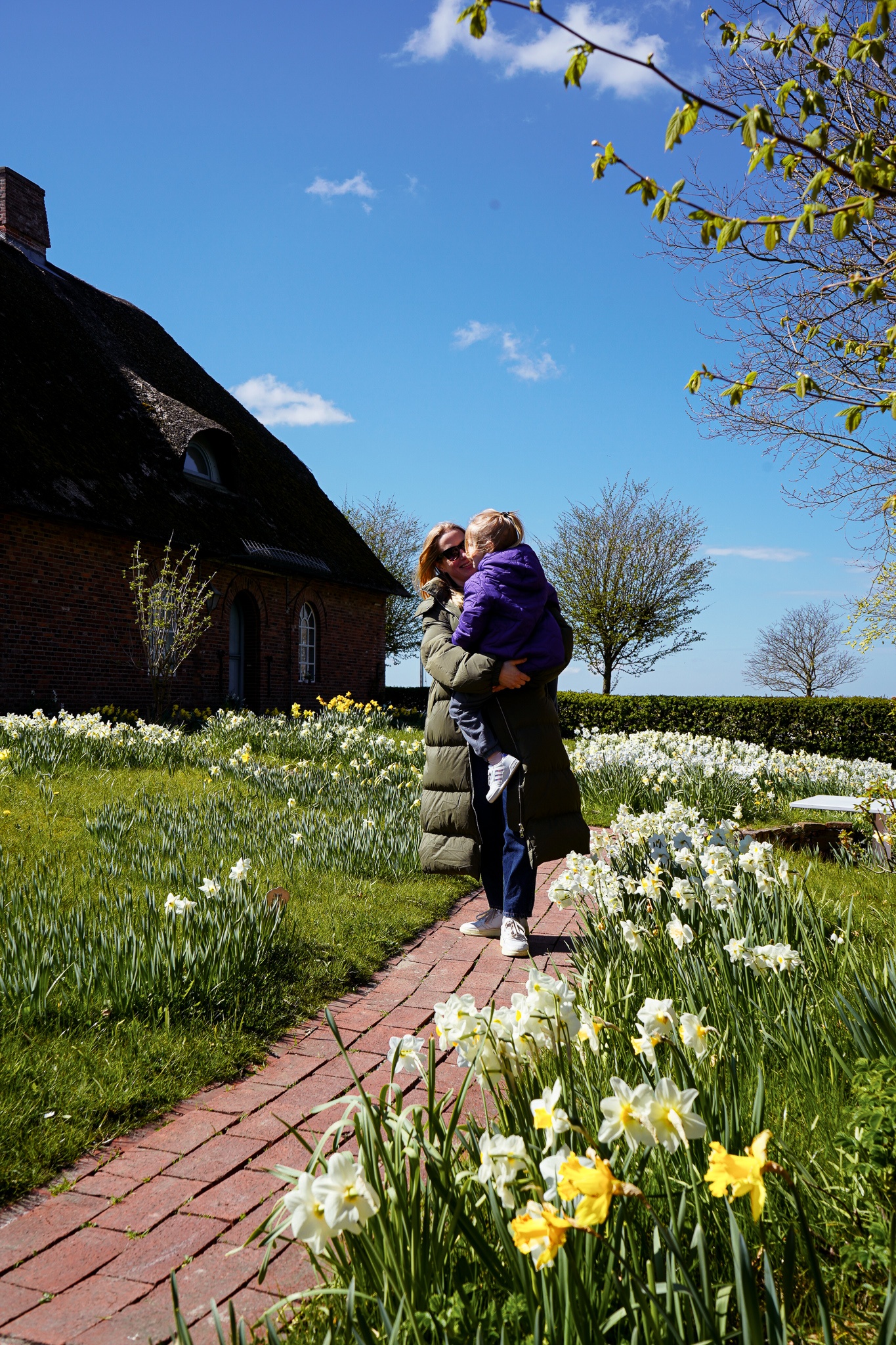 Das Event stand schon ewig auf meiner Bucket List, weil ich Frühblüher liebe und immer auf der Suche nach Inspiration für unseren Garten bin. Auf dem Weg nach Sylt haben wir spontan in Nordfriesland einen Zwischenstopp gemacht, denn der Autozug in Niebüll liegt nur zehn Minuten entfernt. Bei der Gelegenheit haben wir nicht nur meine liebe Kollegin Clara Moring von Tastesheriff und ihre Schwester Dunja Kirchner, die als Landschaftsgärtnerin für den prächtigen Blütenzauber verantwortlich ist, kennengelernt, sondern frisch gebackene Waffeln gegessen, Kaffee in der Sonne beim Spielplatz getrunken und den Mix & Match Schmuck von Carlchen B. aus Celle entdeckt.