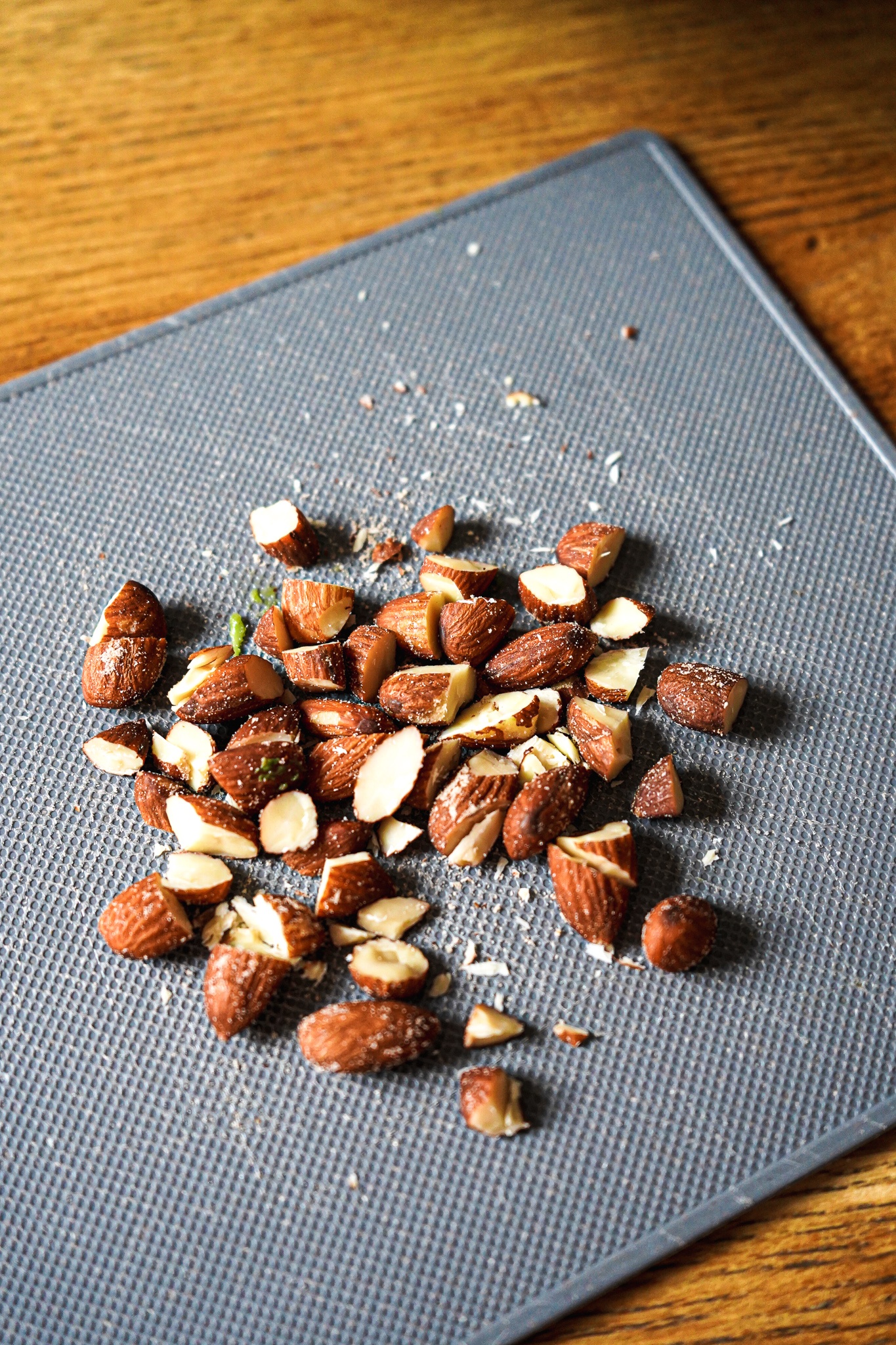 • eine Handvoll geröstete Salzmandeln (z.B. von Seeberger)