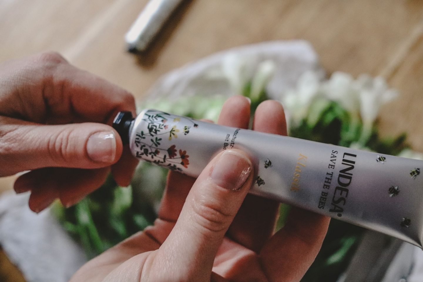 Doch Bienen, Hummeln und Schmetterlinge finden in der modernen Welt kaum noch Nahrung. Die Lindesa Klassik Creme macht nicht nur aus meinen rauen Winterhänden geschmeidige Samtpfötchen, sondern kümmert sich um die Bienen: Für jede verkaufte Tube aus der „SAVE THE BEES“-Sonderedition geht eine Spende an das Netzwerk „Blühende Landschaften„, damit wieder mehr Flächen geschaffen werden können, in denen sich nicht nur die Tiere, sondern auch wir Menschen wohlfühlen.