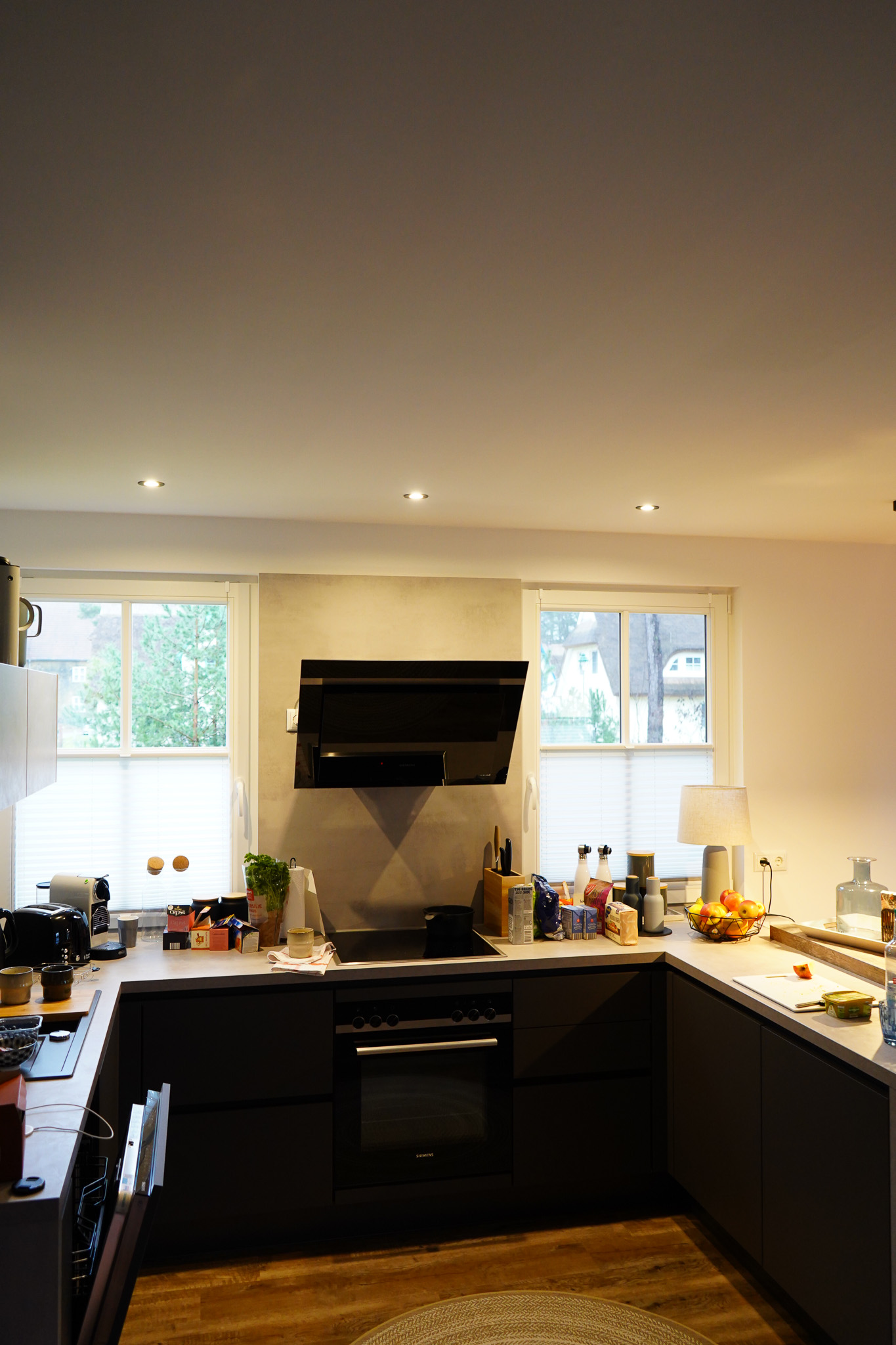 Das Schmuck Hus ist vollausgestattet: Handtücher, Bettwäsche, Nespresso Maschine, Waschmaschine, Tiefkühltruhe, Geschirr, Töpfe, drei Fernseher, Loungemöbel für die Terrasse, ein Grill – es fehlt wirklich nichts. Der nächste Supermarkt und Strand sind ca. 15 Minuten mit dem Auto entfernt. Im Sommer können die Kinder im Garten spielen und auf der Straße skaten.