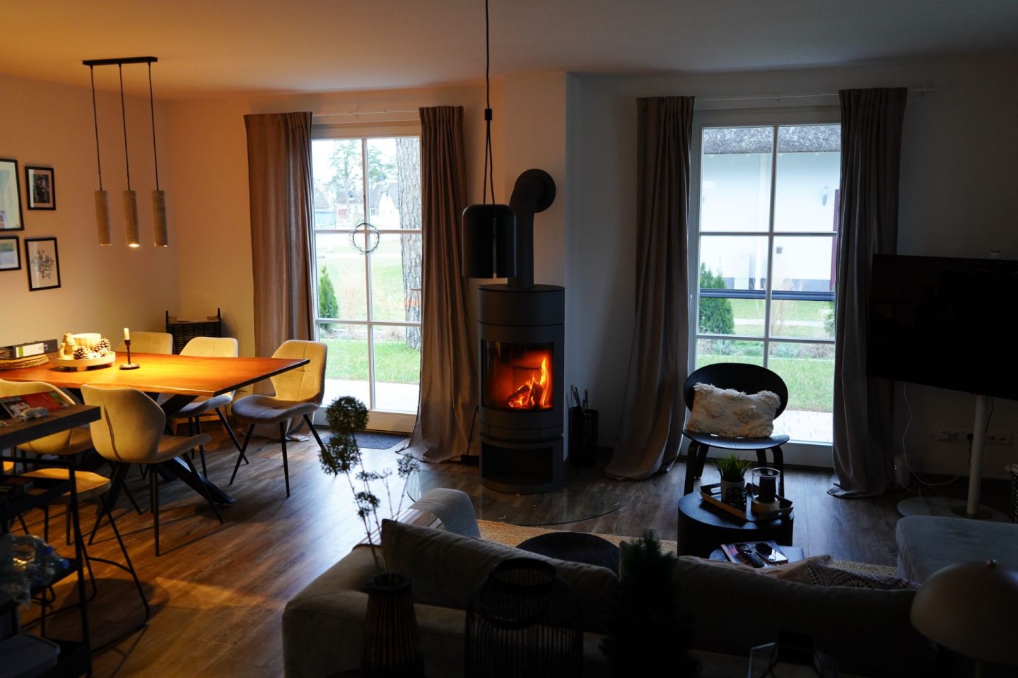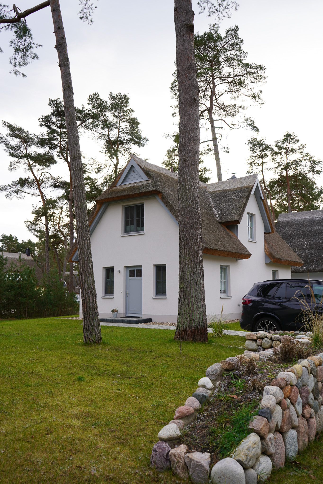 Das Paar hat mitten in der Natur in einem neu gebauten Teil des Fischerdorfes an der Haffküste nahe Zirchow ein Kleinod für sechs Personen geschaffen: Unter großen Kieferbäumen kann man hier als Familie oder Freunde einen gemütlichen Ostsee-Urlaub verbringen. Dafür sorgen die große Wohnküche, Kamin, hauseigene Sauna, Badewanne, zwei Regenduschen, zwei Toiletten und drei Schlafkojen im ersten Stock.