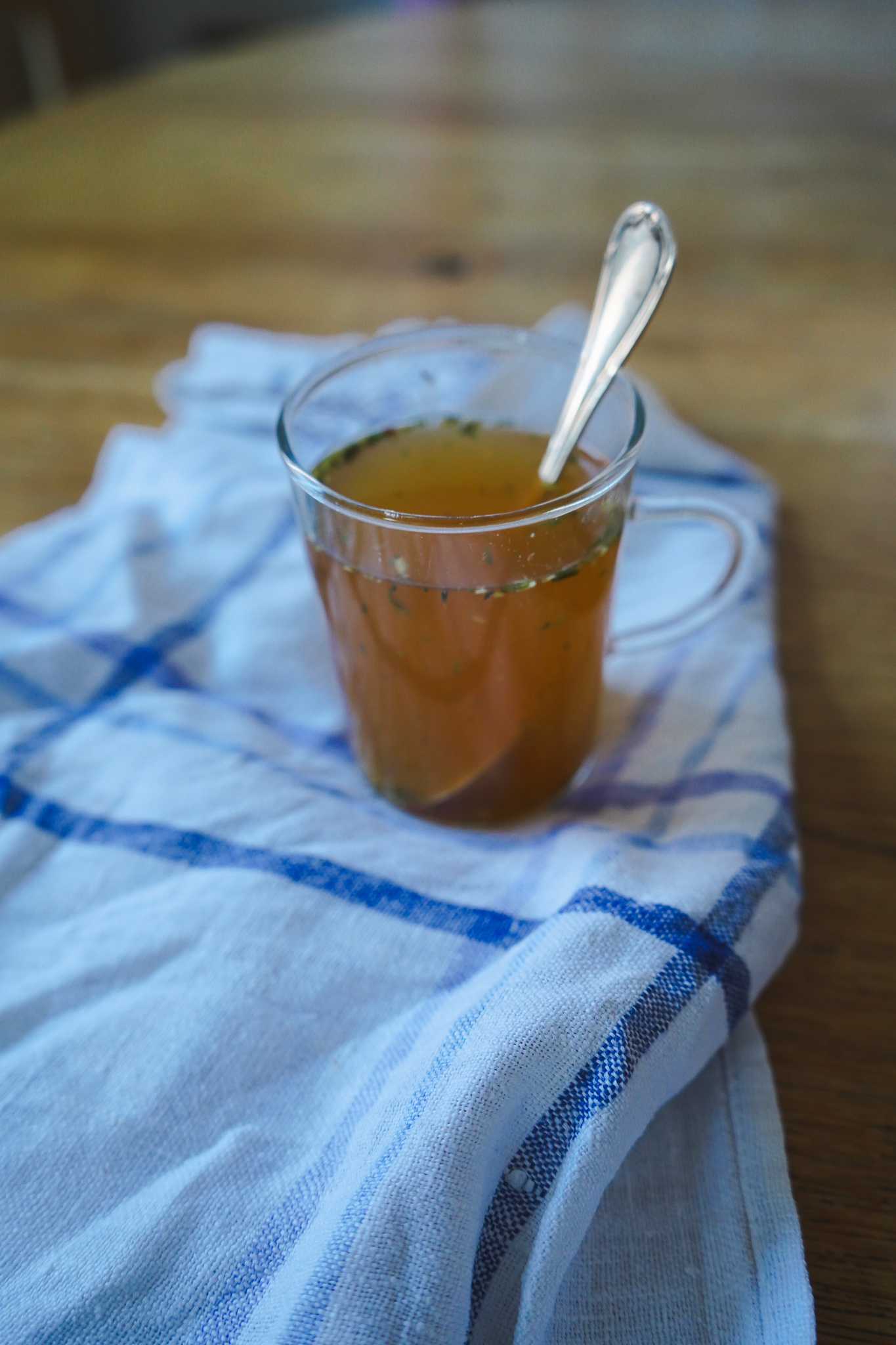 Gemüsebrühe in heißem Wasser auflösen. Ich mache das im Teeglas 😉