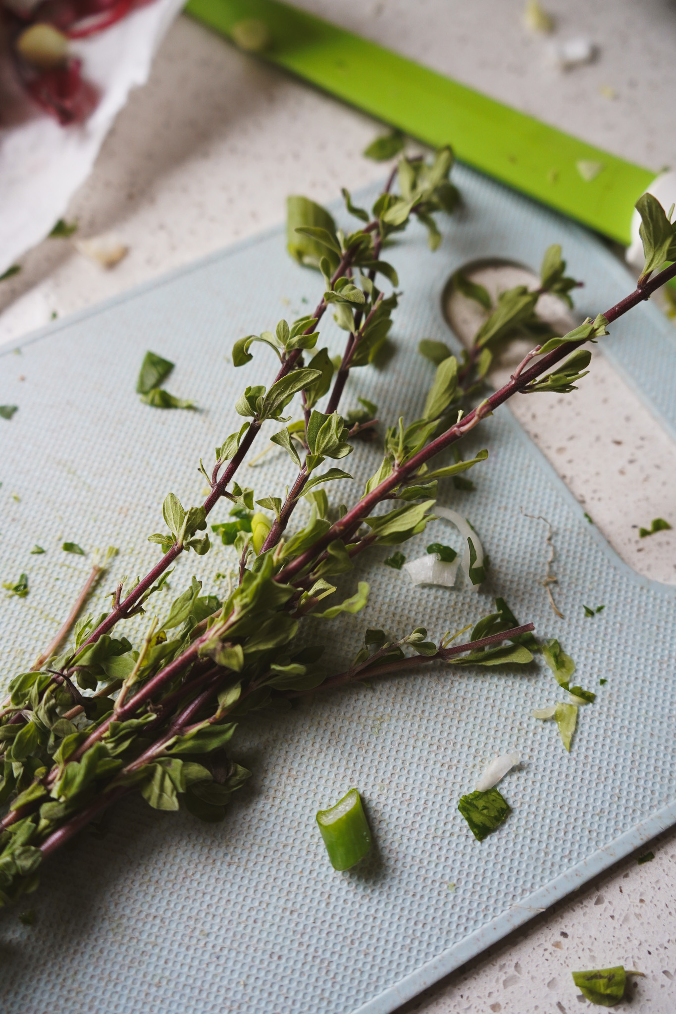 • 2 Zweige Oregano oder Majoran (wenn es keinen gibt, dann getrockneten)