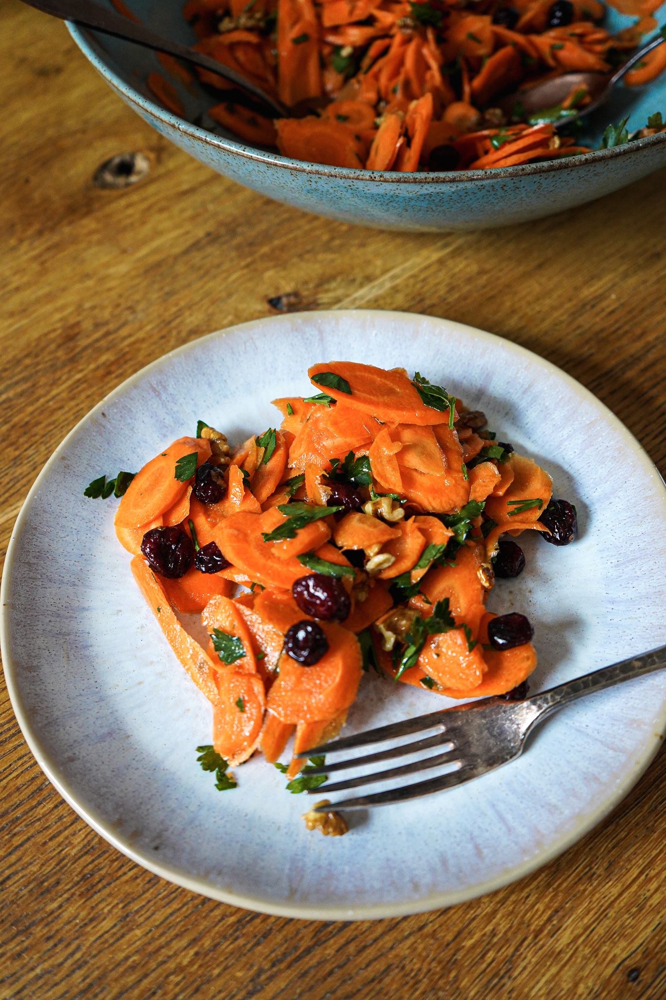 Dieser schöne Salat hat wenig Zutaten, ist trotzdem ausgewogen und vor allem garantiert kein langweiliger Möhrensalat. Auf das Rezept hat mich eine liebe Bekannte gebracht, die genau wie ich eine Schmauserin ist. Das bedeutet: Sie kennt die guten Sachen, weiß aber ebenso die einfachen zu schätzen.