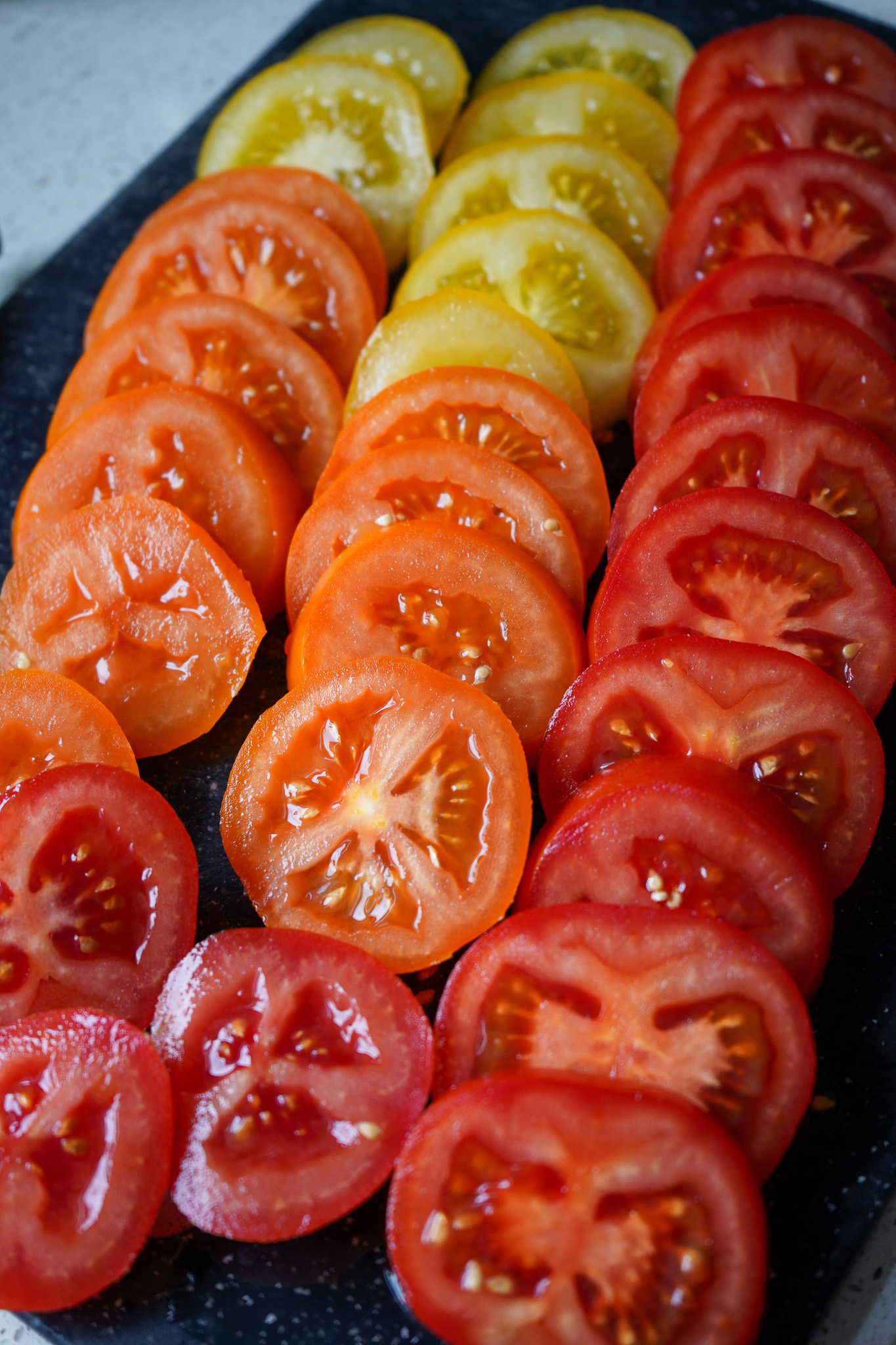 - 8 Stück verschiedene Tomatensorten und/oder -größen (Garten-, Cocktail-, Dattel-, Ochsenherz, rot, grün, gelb)