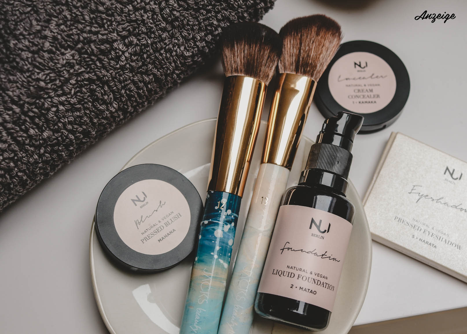 Letzte Woche hat mir die international bekannte Haut-Expertin Miriam Jacks die besten Make-up-Tricks für meinen Beauty-Alltag erklärt. Aus diesem Anlass durfte ich nicht nur die Produkte der Berliner Naturkosmetikmarke Nui Cosmetics, sondern auch die veganen Make-up-Pinsel von Jacks Beautyline testen. Der Foundation Pinsel No. 12 ist seitdem jeden Tag hier im Einsatz und ich kann einen deutlichen Unterschied zu meiner vorherigen Technik (Schwamm, Finger, Billo-Pinsel) erkennen.