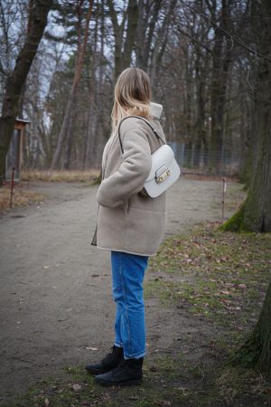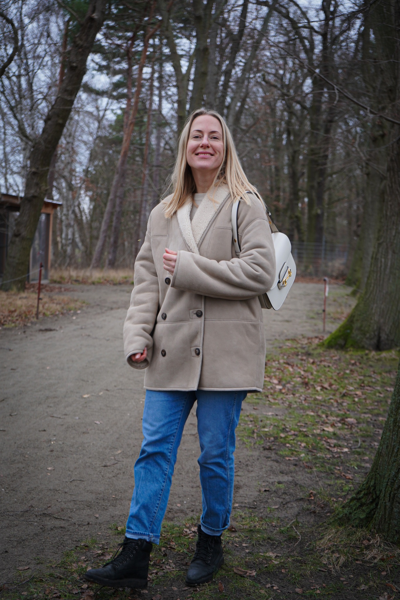 In dieser Saison sind in fast allen Onlineshops viele Lammfelljacken reduziert und auch ich konnte nicht widerstehen eine dieser Shearling Jacken zu kaufen. Meine Wahl fiel auf die Louloustudio Jacke mit Reverskragen und doppelreihiger Knopfleiste, die in meiner Größe L über 30 % reduziert war.