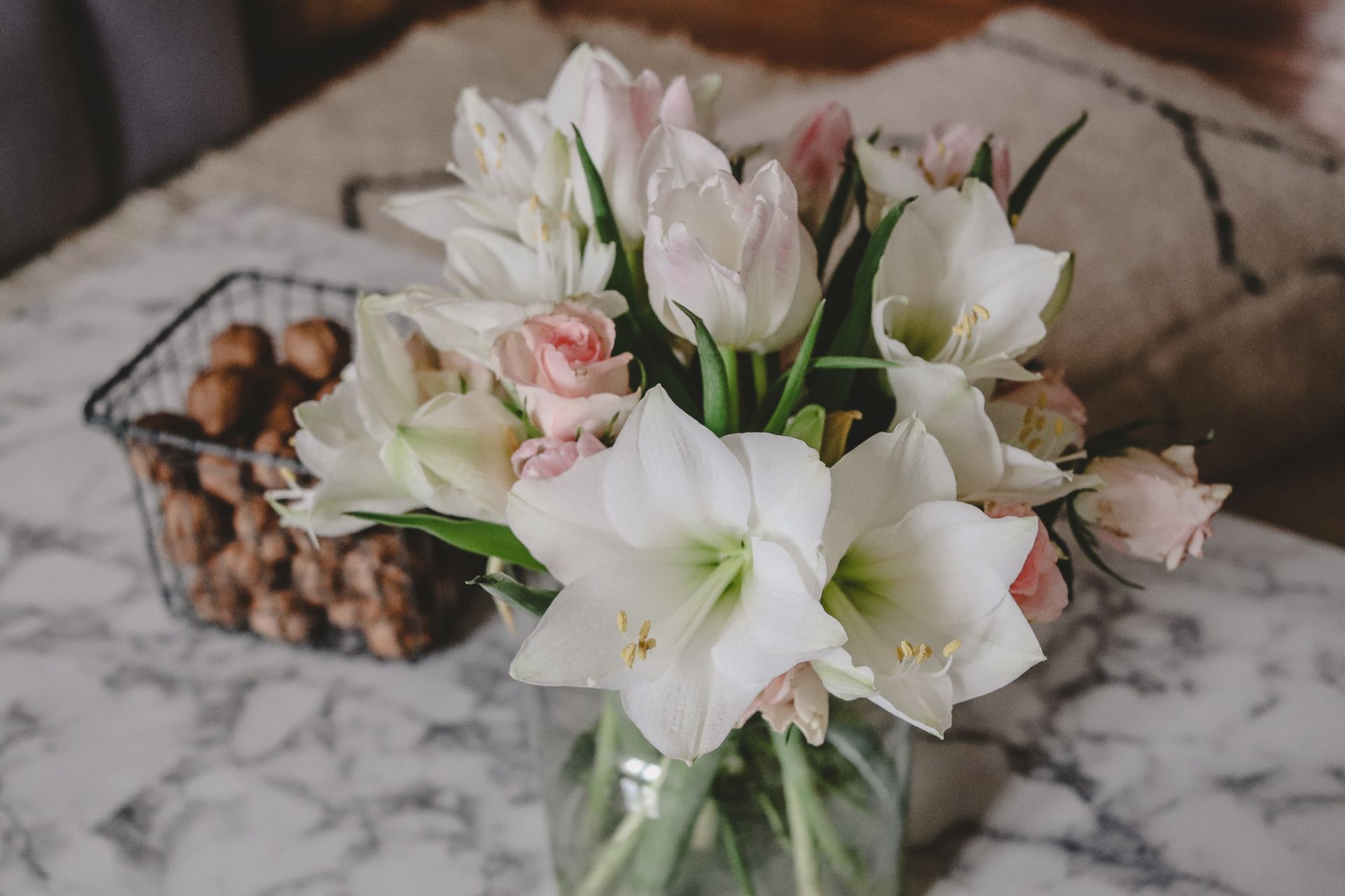 Blumen sind ja meine große Leidenschaft. Deshalb gibt es noch einen letzten Strauß für dieses Jahr! Der weiß-roséfarbene Mix steht Weihnachten bei uns auf dem Tisch und wirkt beinahe frühlingshaft. Dazu passt das Wetter: Hier scheint die Sonne und die Nachbarin ist gerade in kurzen Hosen an der Villa Peng vorbeigejoggt. In diesem Sinne wünsche ich euch zauberhafte und besinnliche Weihnachtsfeiertage. <3