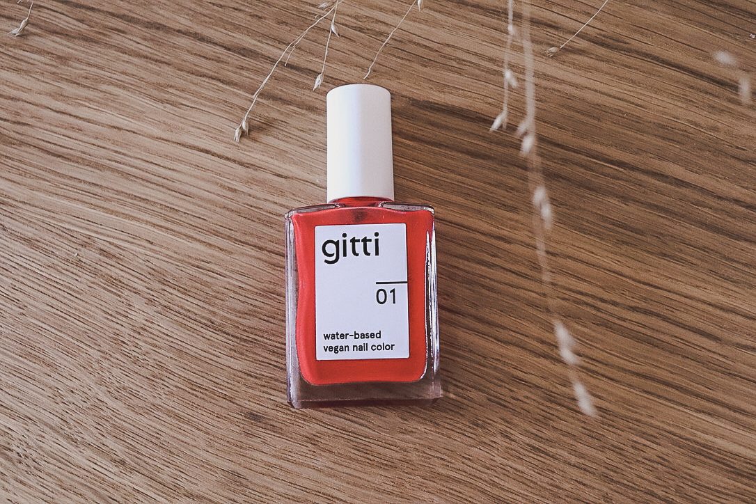 4. Nagellack 01 von Gitti: Die innovative Nagellackformel basiert zu 55 % auf Wasser, ist vegan, tierversuchsfrei und geruchsneutral. Die meisten herkömmlichen Nagellacke stehen ja leider im Verdacht krebserregende Stoffe zu enthalten, die sich u.a. negativ auf die Fruchtbarkeit auswirken. Nein, danke! Tipps zum Auftragen: Jeweils zwei dünne Schichten Base & Top Coat und farbigen Lack auftragen und danach die Hände am besten ein paar Stunden nicht mit Wasser in Berührung bringen. Das gilt aber nur für warmes Wasser.