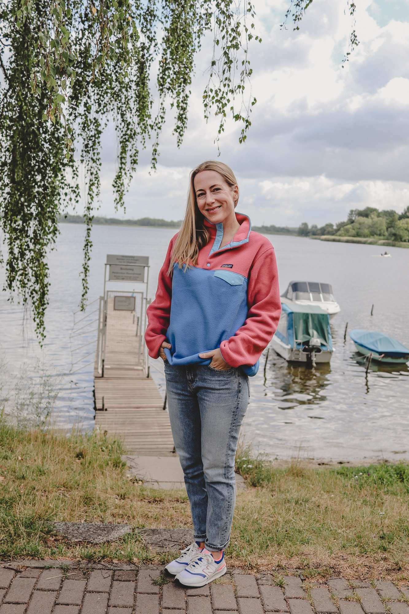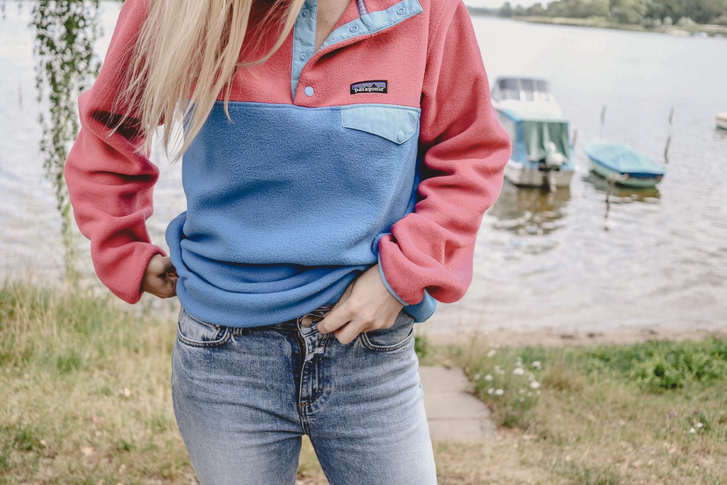 Fleecepullover: LW Synch Snap-T von Patagonia, Jeans: Baker High Blue Stretch Denim von Closed, Schuhe: New Balance 997