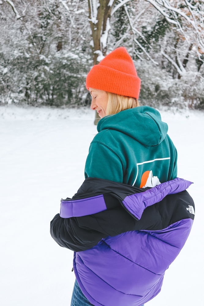 *Affiliate LinksMütze: Arket, Jacke: The North Face, Fairtrade-Hoodie aus Bio-Baumwolle: Ciao Ciao Club (PR-Geschenk), Jeans: Agolde, Schuhe: Sorel