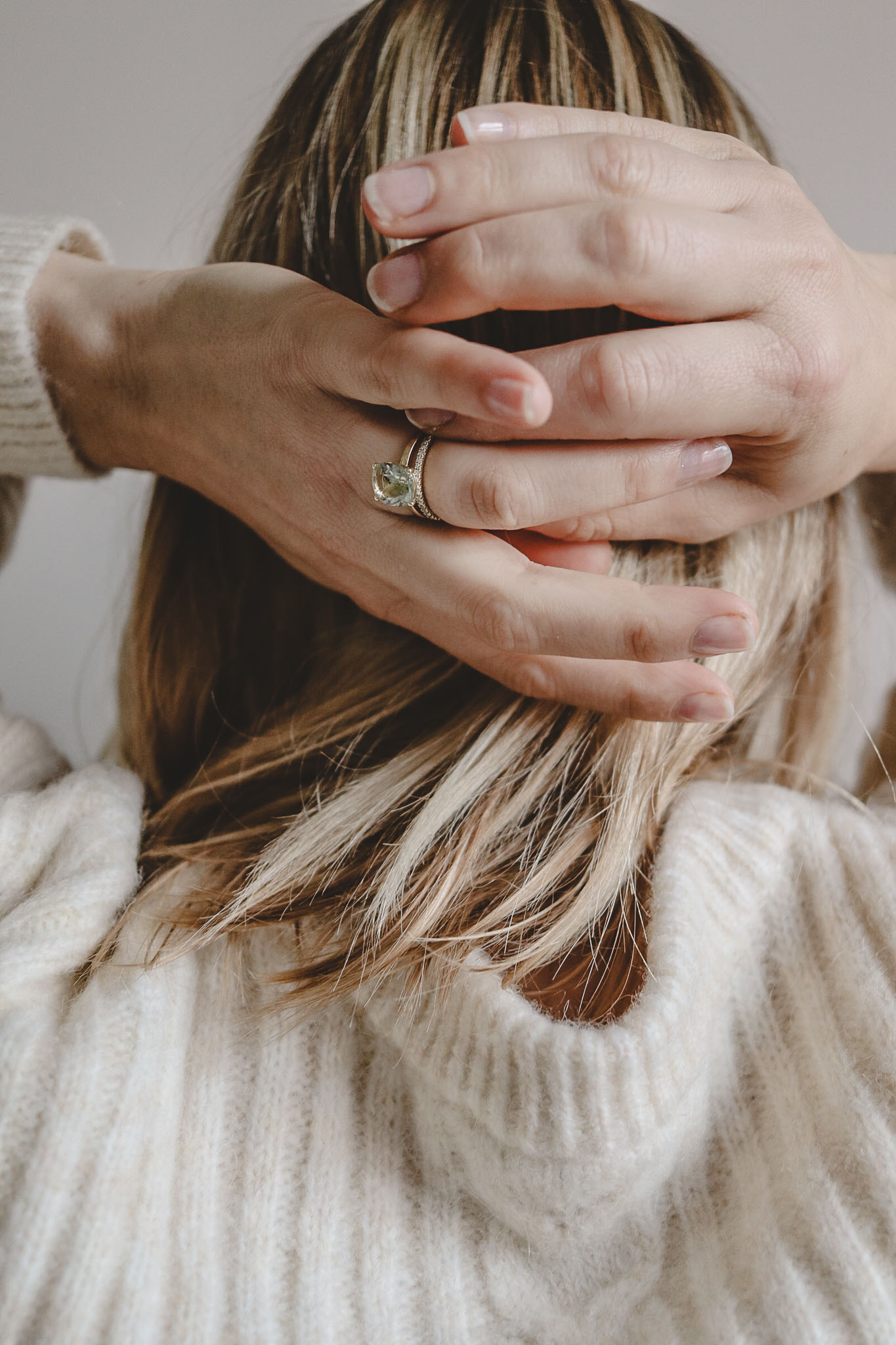 Genau deshalb brauchte ich etwas Grünes, denn Grün ist die Hoffnung. Sagt man doch so. Der Prasiolith wird auch Grünquarz, grüner Amethyst oder Vermarin genannt. Der Name ist eine Zusammensetzung der griechischen Wörter prason (Lauch) und lithos (Stein), bedeutet demnach also lauchfarbener Stein. Mit Lauch habe ich nichts am Hut, aber Blass-Grün ist meine Augenfarbe und als ich den Ring im The Siss Bliss Showroom in Berlin gesehen habe, wusste ich sofort: Der ist es. Der Namen des Modells: Blissi – von englisch „Bliss“ für Glückseligkeit.