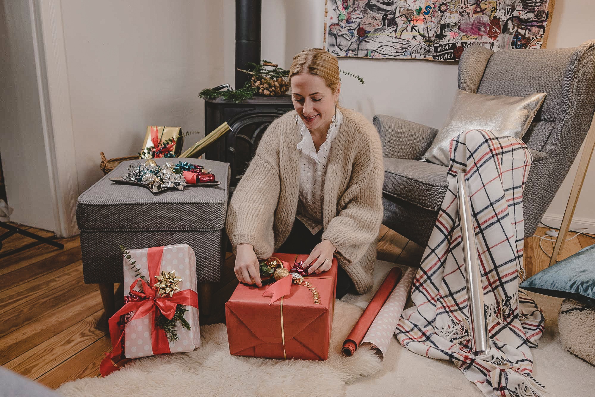 Dabei haben wir nicht nur ein Adventskranz-DIY-Tutorial gemacht, bei dem ich persönlich nicht nur ein paar gute Tricks gelernt habe, z.B. wie man Tannenzweige richtig arrangiert und länger frisch hält, sondern auch das ein oder andere Weihnachtsgeschenk hübsch verpackt.