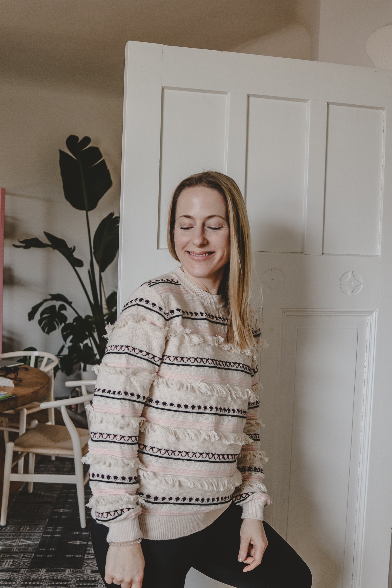 Das Wochenende habe ich deshalb nur in Leggings verbracht und viel mit Baby Peng gekuschelt. Die Fransen des Pullovers hat sie alle einzeln untersucht. Meistens braucht man gar kein Spielzeug, damit alle glücklich und entspannt sind.