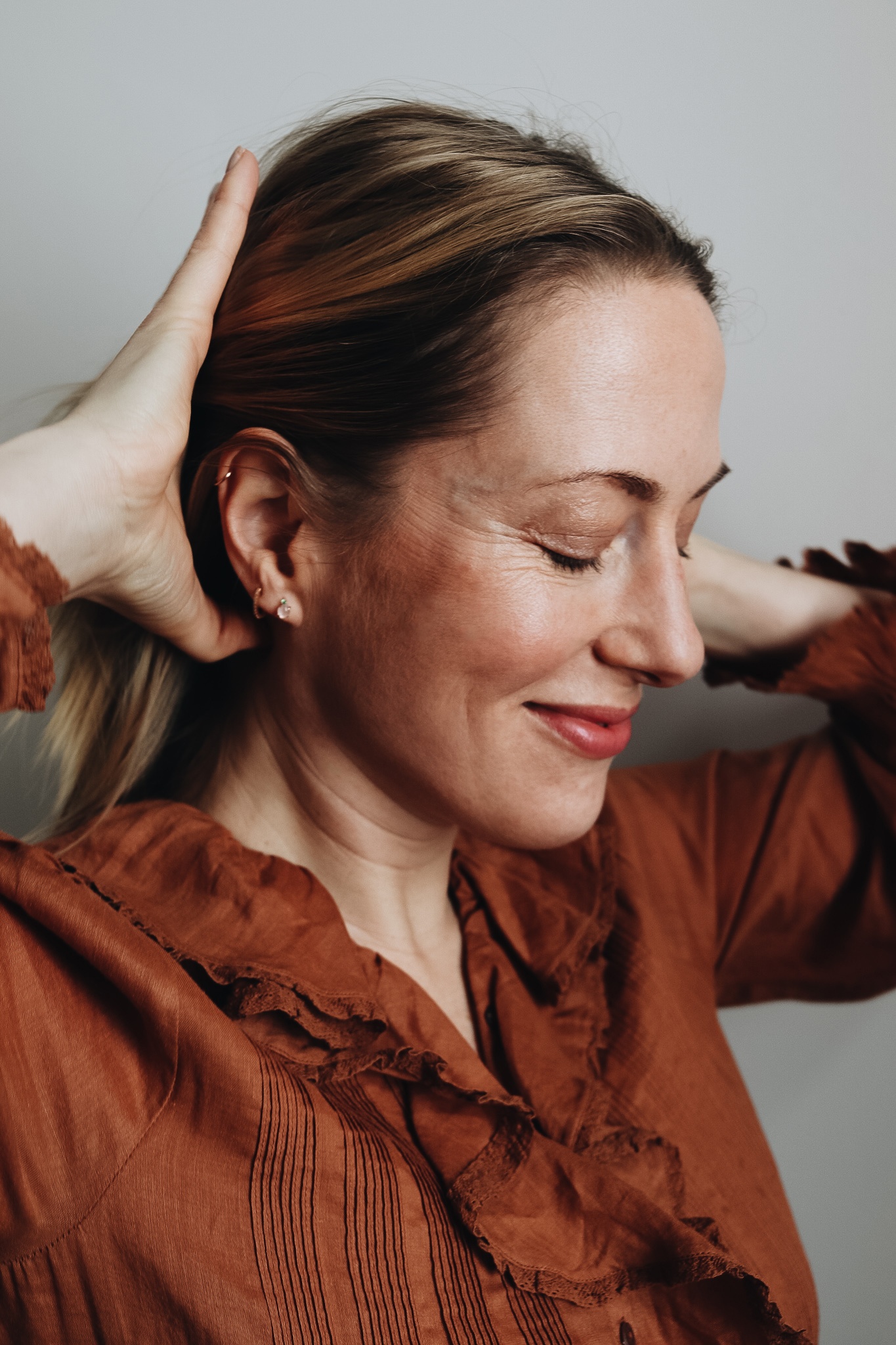 An Weihnachten fiel es mir wie Schuppen von den Augen: Warum hole ich meinen guten Schmuck eigentlich nur an den Feiertagen raus? Ich sollte ihn jeden Tag tragen! Als Helix Piercing Fan trage ich vor allem Ohrringe. Für Zoom-Calls habe ich Ketten wiederentdeckt. Ich arbeite aber nicht nur mit meinem Schmuck, sondern mache Sport und schlafe damit. Das bedeutet: Meine Ansprüche in Sachen Haltbarkeit und Look sind hoch. Doch stattdessen schone ich meinen Echtschmuck und trage Fake-Gold.