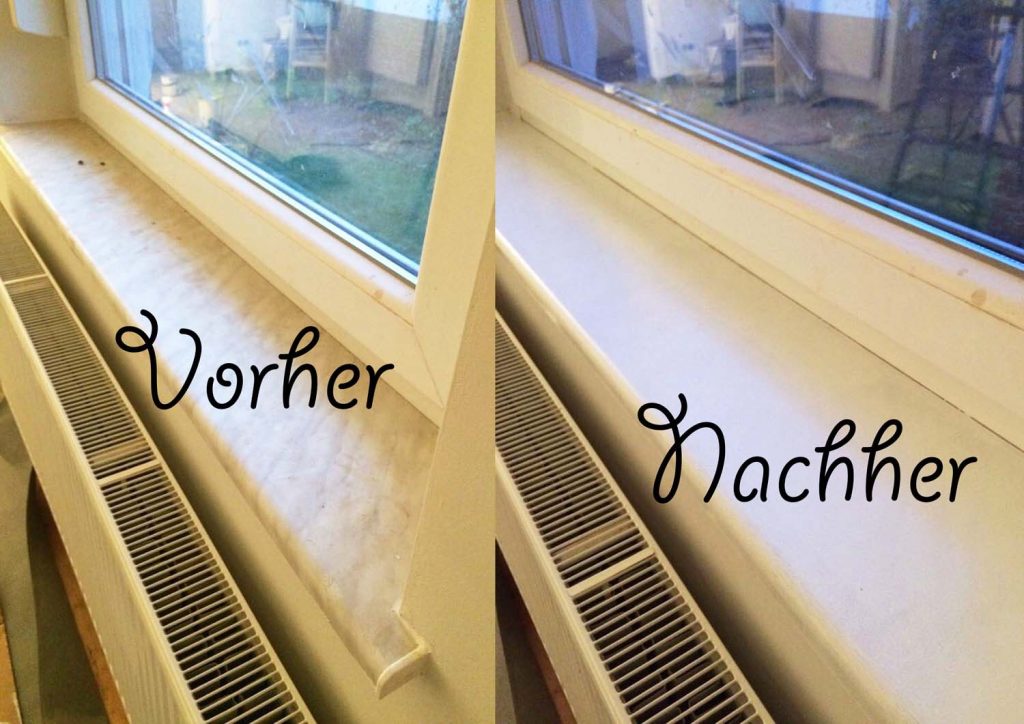 Mein Tipp für das Streichen von Türen: Weder bei der Farbe noch bei den Pinseln bzw. Rollen sparen. Wir haben die Türen- und Türrahmen mit einem Off-White namens „Wimborne White“ von Farrow & Ball lackiert. Ganz wichtig, wie beim Make-up: ein Primer! Schon die erste Schicht Farrow & Ball Interior Wood Primer & Undercoat (siehe oben) sah beinahe perfekt aus und wir waren so begeistert von der hohen Pigmentierung, das wir spontan die hässlichen Kunststoff-Fensterbänke mit den Lacken aus U.K. verschönert haben. TOP-Ergebnis!