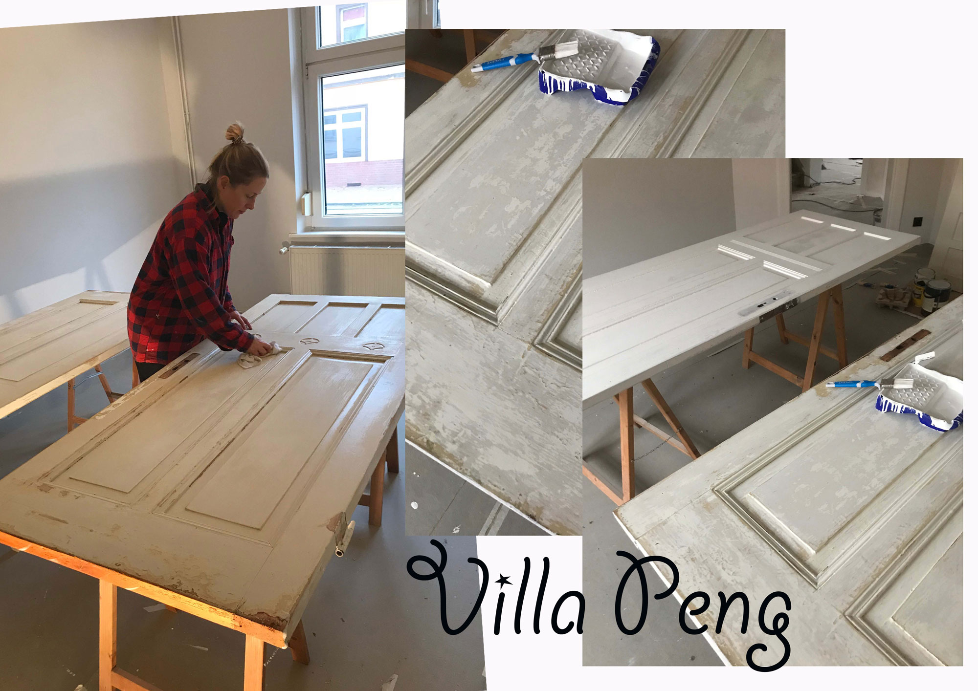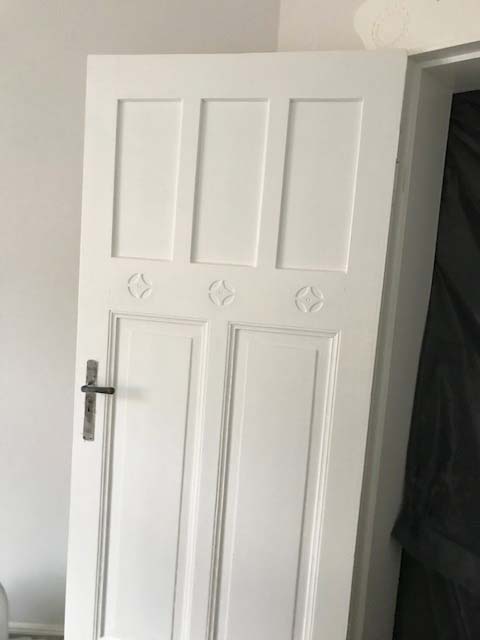 Mein Projekt in den letzten Wochen waren die Türen. Insgesamt sieben Stück mussten abgeschliffen, neu grundiert und lackiert werden, wobei jede Lackschicht vier Stunden Trockenzeit benötigt.