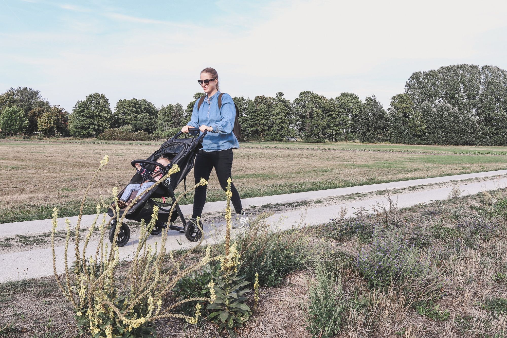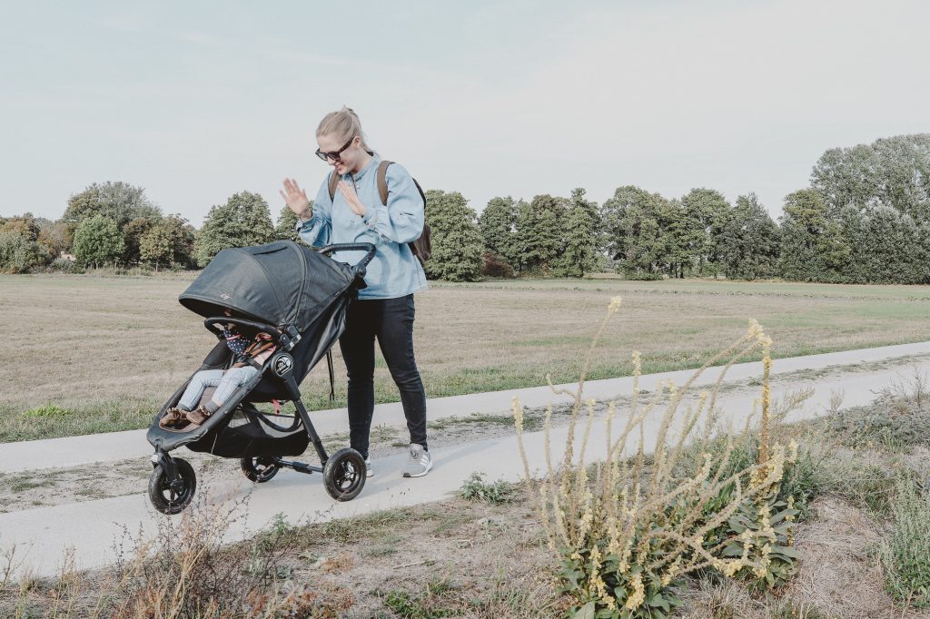 Nach der Schwangerschaft wollte ich möglichst schnell wieder fit werden. Lange Spaziergänge mit meinem Kind haben mir dabei sehr geholfen. Dabei ist es essentiell, sich genau anzuschauen, wie der Untergrund in der Umgebung ist. In Berlin findet man vor allem Kopfsteinpflaster und Tramgleise. Eine gute Federung und breite Reifen sind Pflicht.