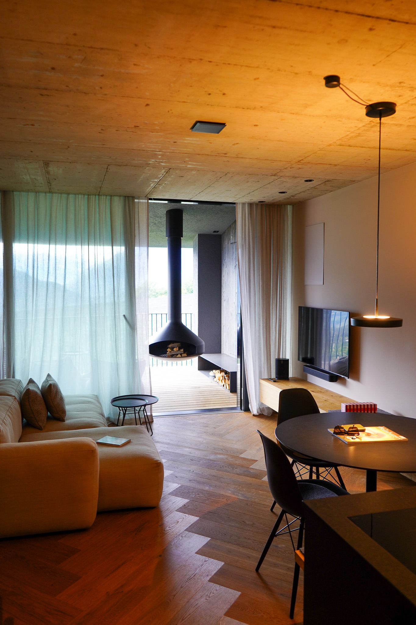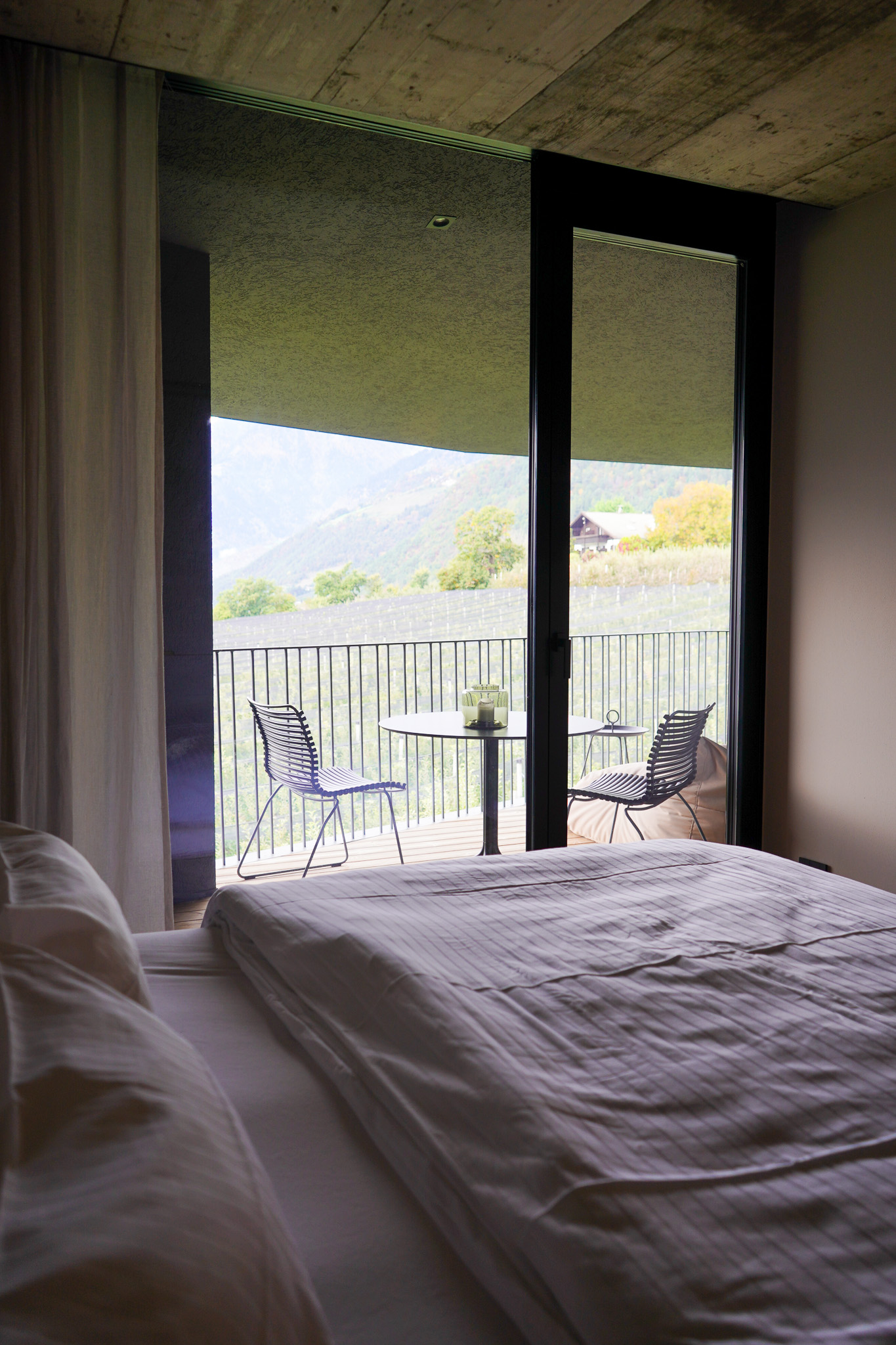 Erster Stop: Die Meran Suites in Dorf Tirol. Zum Portfolio zählt u.a. dieses coole Apartment für zwei Personen mit Küche, Bad und Panorama-Ausblick auf das Vinschgau. Noch ein Highlight war der Kamin auf dem Balkon, den wir schon morgens angemacht haben und dann mit unserem Kaffee draußen saßen. Dorf Tirol ist ein guter Ausgangspunkt für zahlreiche Wanderungen, u.a. über den Tappeinerweg runter nach Meran oder zum Schloss Tirol. Bei der Weinernte konnten wir mitten im Weinberg einen frischen Suser trinken – ein unvergesslicher Moment, auch wenn neuer Wein komisch aussieht und so lala schmeckt.