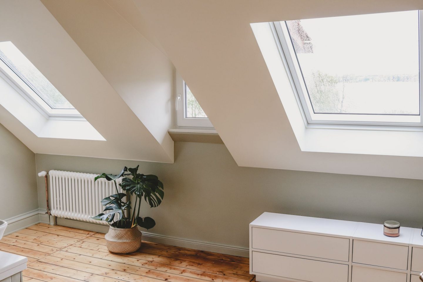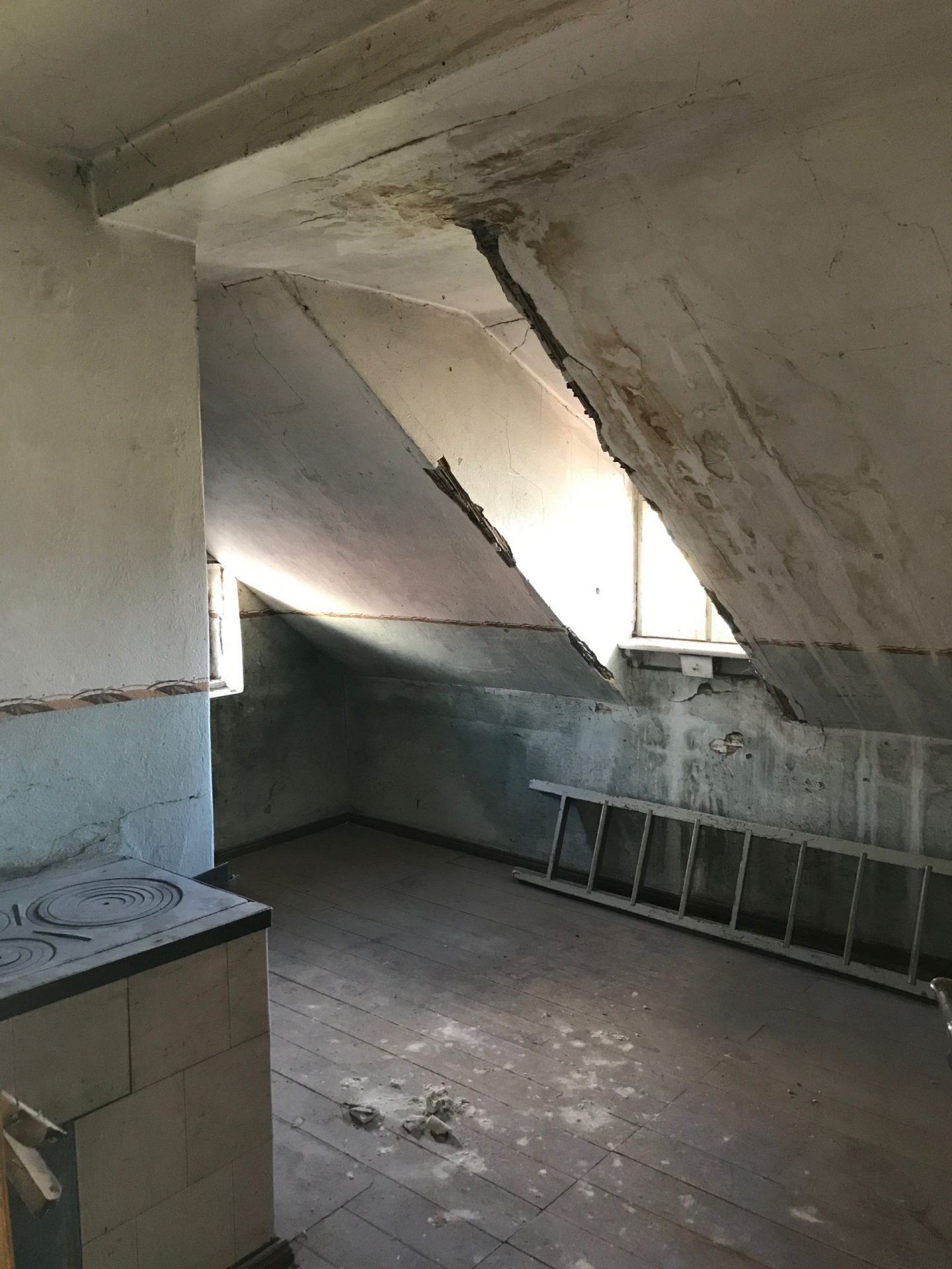 Die erste Maßnahme auf der langen To-do-Liste: zwei Dachflächenfenster, die nicht nur für mehr Licht, sondern den besten Blick auf den See ermöglichen, wurden installiert. Danach hat Flori mit Unterstützung von YouTube-Videos mit dem Sanieren der Wände begonnen.