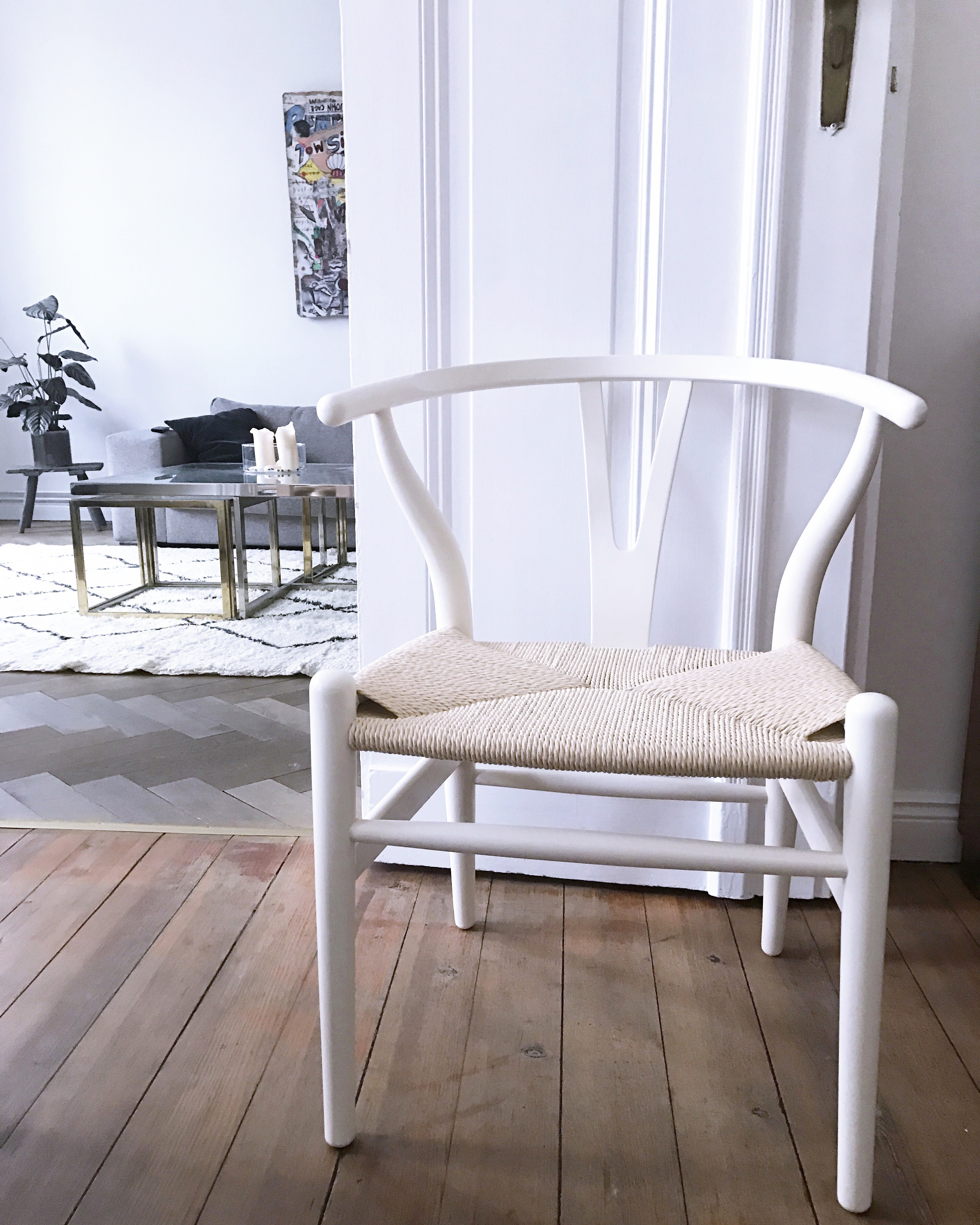 Der Nestbau-Trieb hat mich weiterhin fest im Griff – ich fühle mich wie ein Vogel, der dauernd mit einem neuen Zweiglein im Schnabel zu seiner Brutstätte fliegt. Dieser Stuhl stand schon lange auf meiner Interior-Wunschliste. Designt wurde er 1949 von Hans J. Wegner und wird seitdem von der dänischen Möbelfirma Carl Hansen & Søn unter dem Namen „CH24 Wishbone Chair“ vertrieben.