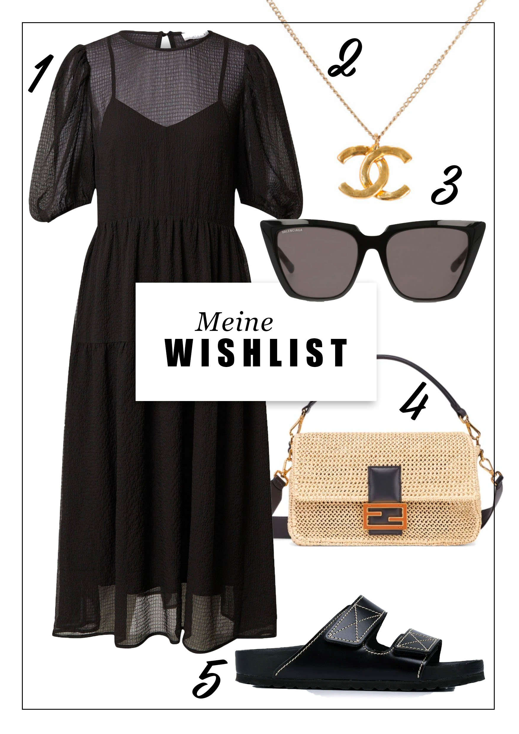 Und der funktioniert bekanntermaßen so: Monochrome Farben wie Schwarz, Weiß und Beige treffen auf begehrte Designer-Accessoires, wahlweise taufrisch aus der Boutique oder Vintage gekauft. Mein Favorit, den ich jeden Tag genau so tragen würde: ein schwarzes Kleid mit dekorativen Puffärmeln oder einem großen Kragen in Kombination mit Birkenstocks und der in diesem Sommer obligatorischen Korbtasche.