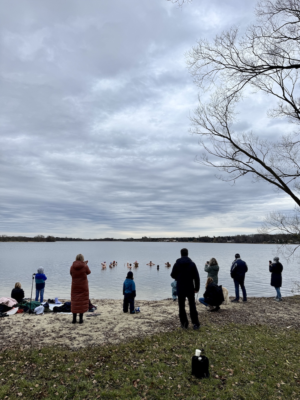 Und das Gefühl nach: Oh mein Gott, das war wirklich mindblowing. Auch wenn eine Krankheitswelle einen Teil der Gruppe ins Bett gezwungen hat, sind wir bei circa 5° Wassertemperatur 3 Minuten in den See gegangen. Die meisten waren ohne Eisbaden-Erfahrung, aber hatten Bock, etwas Neues zu erleben und die eigenen Grenzen auszutesten. Angefeuert wurden wir von Familie, Kindern und Freunden. Danach lagen uns alle in den Armen und haben uns an dem köstlichen Tee- und Suppenbuffet von Coco Catering gestärkt.