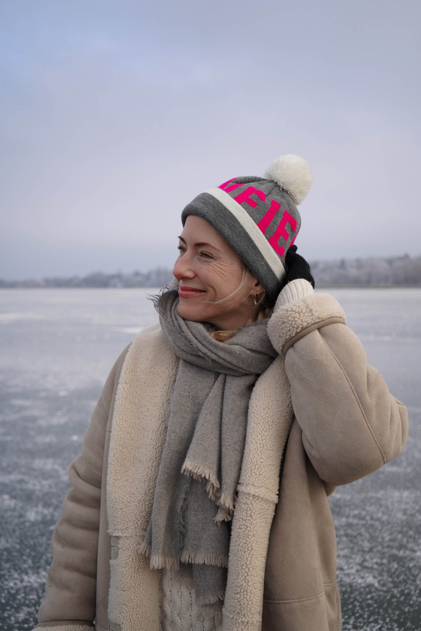 Die eisige Weite war beeindruckend, genau wie das Knacken ab und zu. Allerdings war es so eiskalt, dass Flori und ich nach einer halben Stunden den Heimweg angetreten sind. Ich habe diesen Winter meine alte Pudelmütze wieder rausgeholt, die Pauli und ich jetzt abwechselnd tragen. Sie war in der Zeit, in der wir auf dem Eis waren, übrigens bei den Großeltern – kindlicher Lagerkoller nach Corona.
