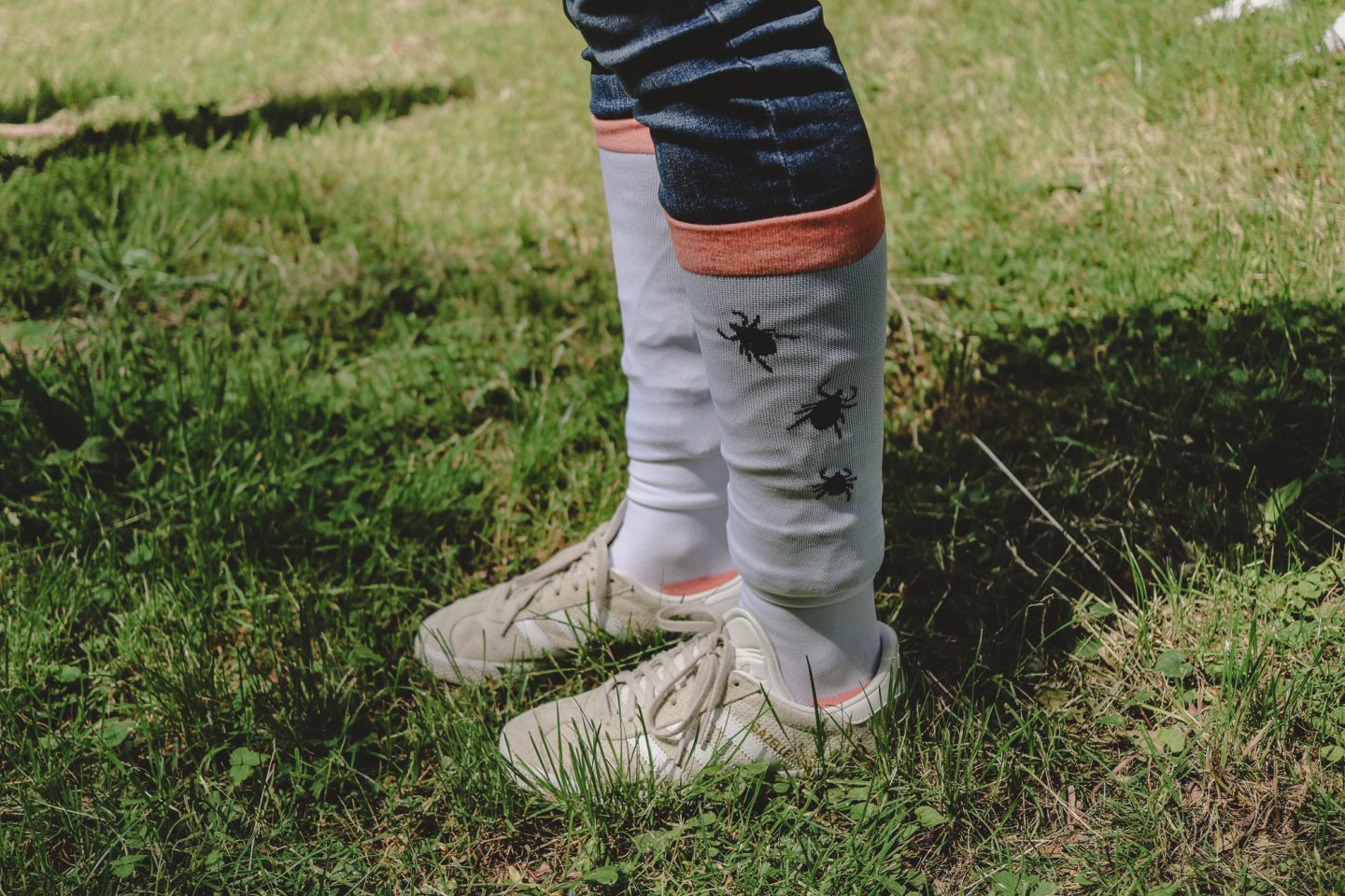 Bei Wanderungen durch hohes Gras oder Wälder am besten lange Kniestrümpfe über die Hosenbeine ziehen.