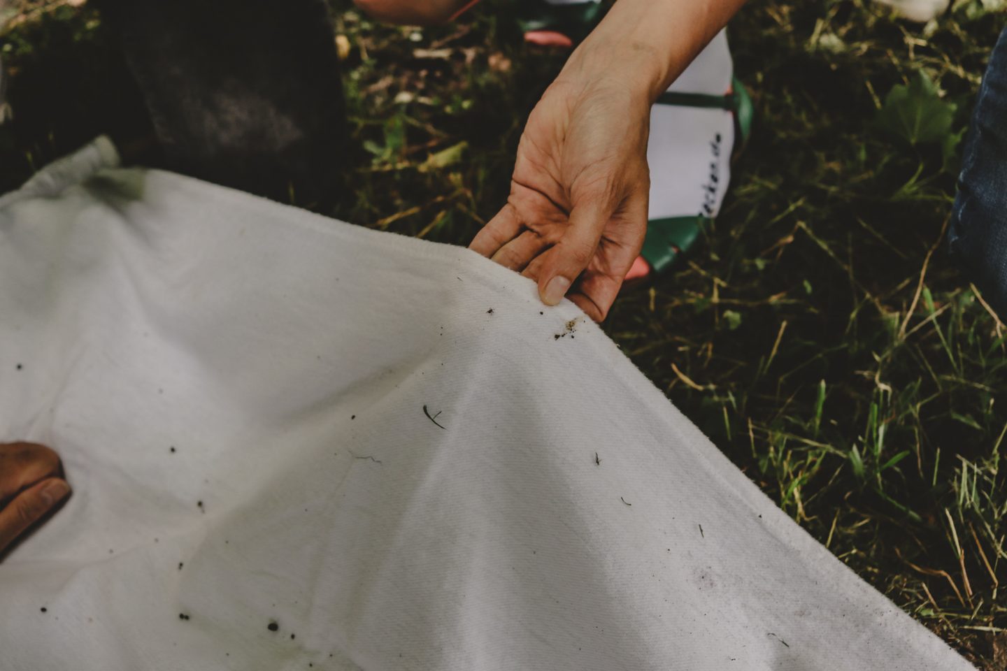 Zu den Rednern zählte u.a. der Zeckenforscher Prof. (a.D.) Dr. Jochen Süss, mit dem wir nach seinem Vortrag im Englischen Garten mit weißen Tüchern nach Zecken „geflaggt“ und innerhalb weniger Minuten sowohl Nymphen als auch ausgewachsene Zecken-Weibchen im Gebüsch gefunden haben. Es war spannend zu sehen, wie das Flaggen funktioniert – und gleichzeitig erstaunlich, dass die Parasiten wirklich überall im Grünen auf einen Wirt lauern können. Übrigens fallen Zecken nicht von Bäumen, sondern sitzen am liebsten in der Laubstreu.
