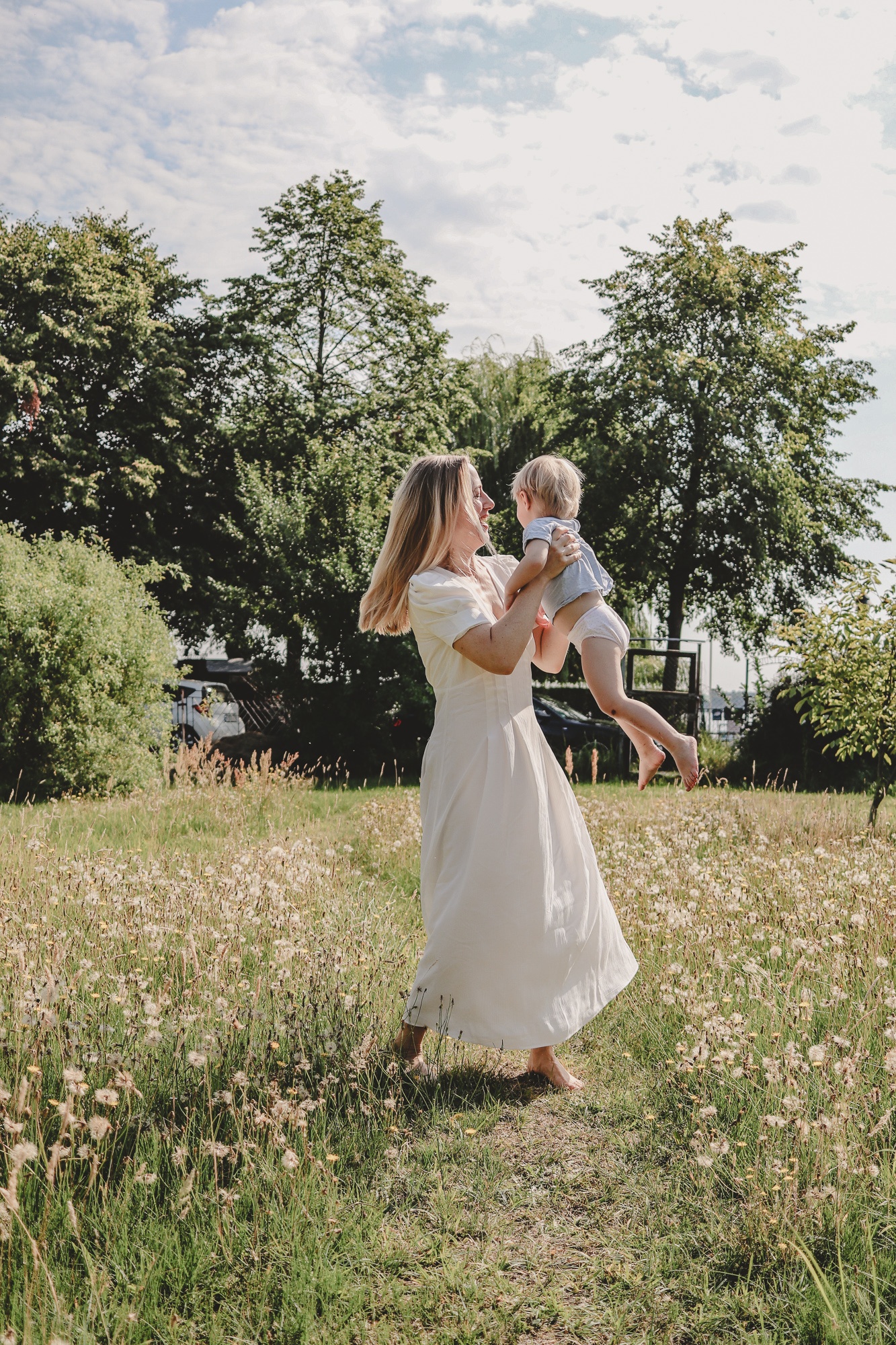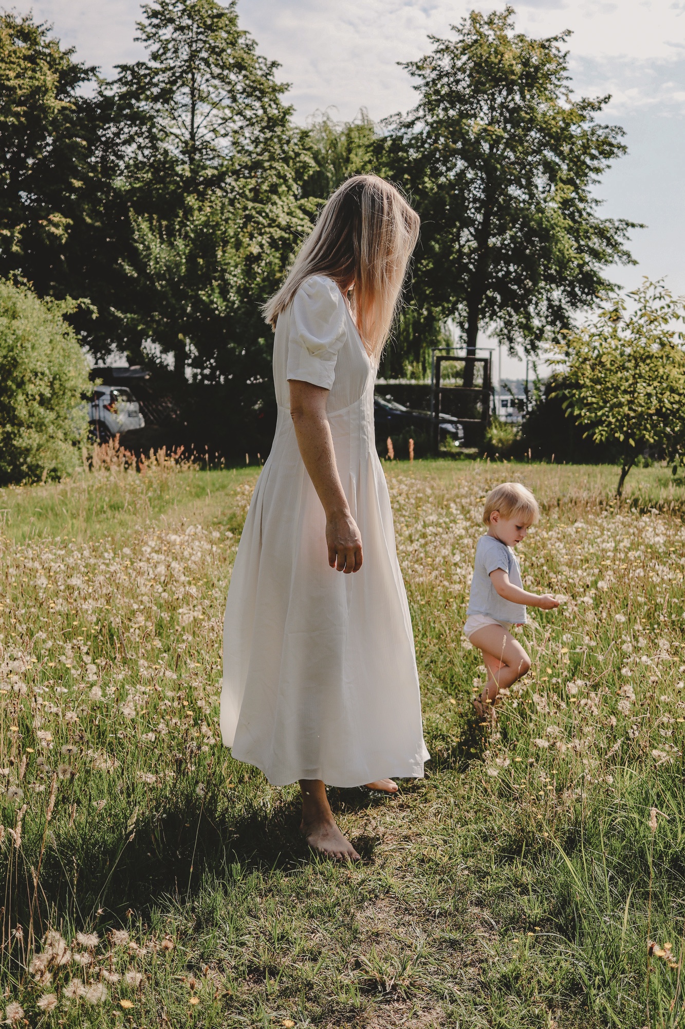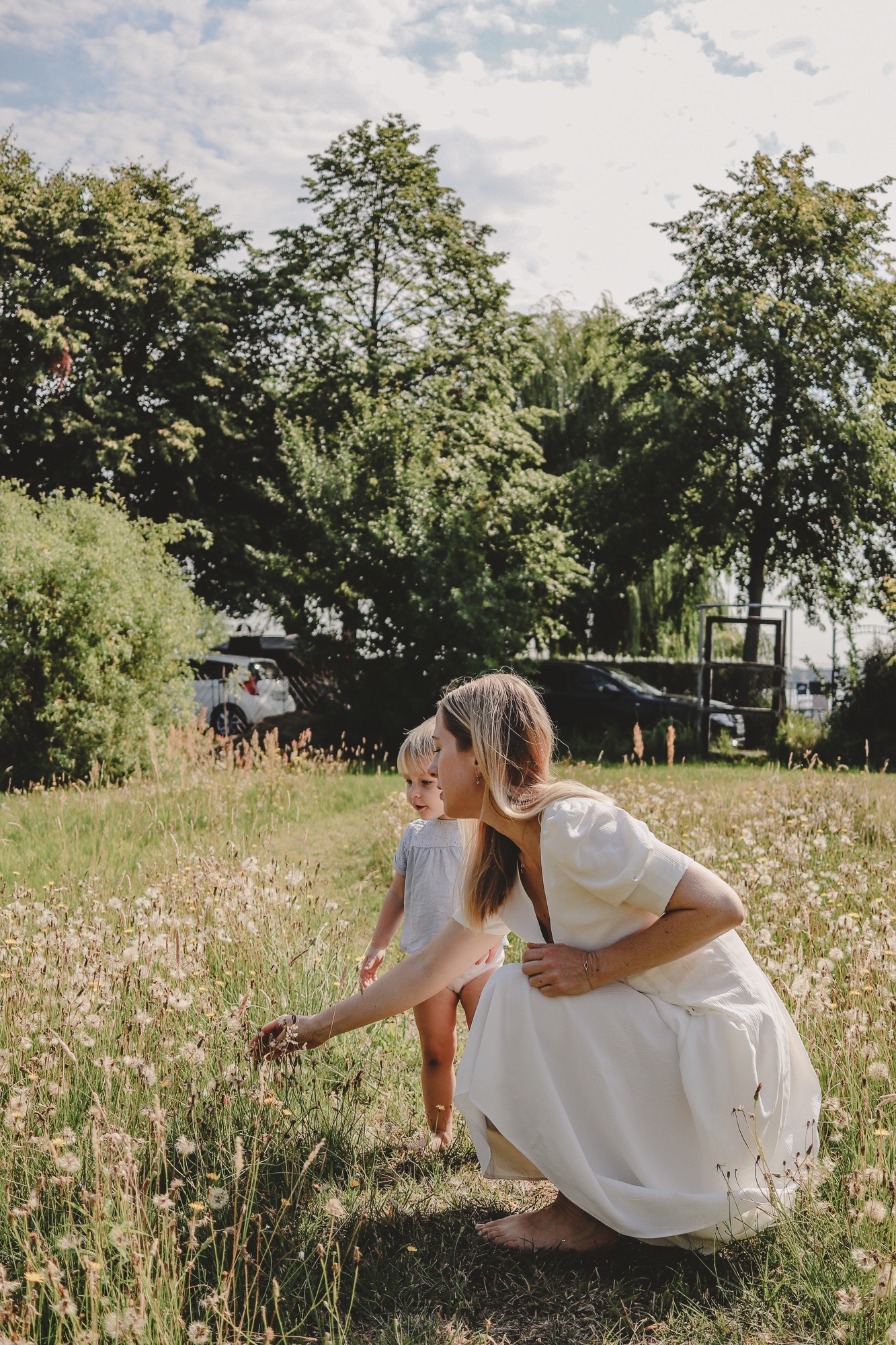 Mein Kind spielt barfuß im Garten, läuft über die Wiese und tobt im Laub – genau diese Szenen hatte ich vor Augen, als wir raus aufs Land gezogen sind. Der Garten ist, egal zu welcher Jahreszeit, mein „happy place“ – und dieses Glück möchte ich mit meiner Tochter in vollen Zügen genießen. Die alten Apfelbäume und Pusteblumenwiese sind einfach zu schön!